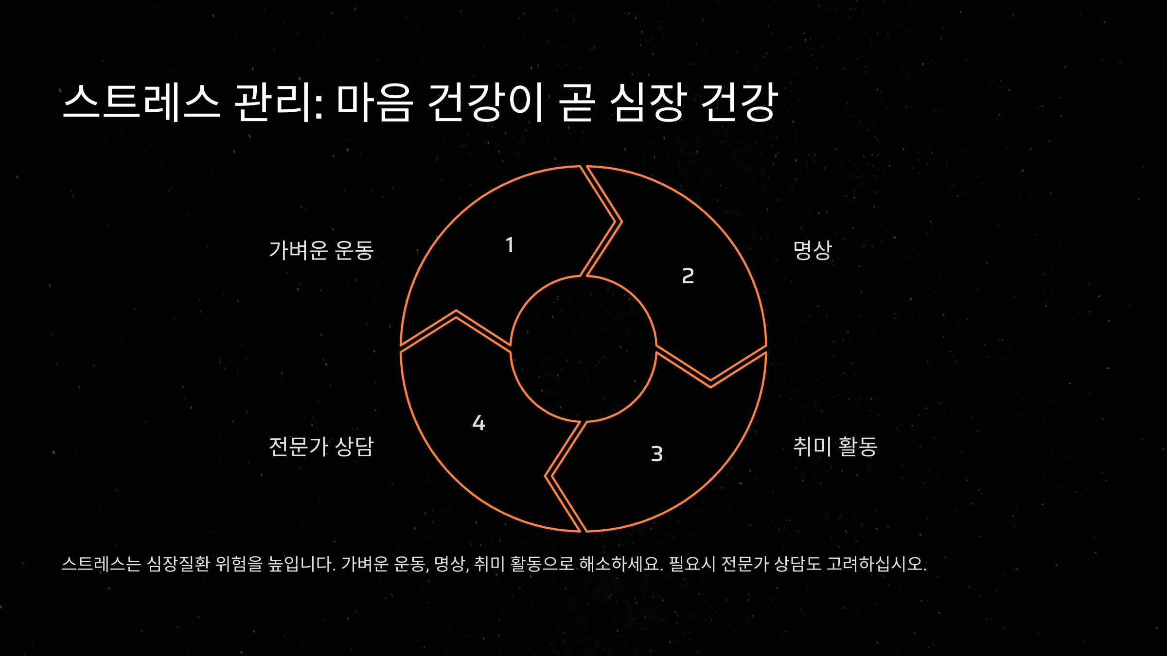 심장은 신체의 중심이지만, 마음의 영향을 가장 많이 받는 기관이에요. 건강한 마음이 건강한 심장을 만든다는 것을 잊지 말고, 스트레스를 적극적으로 관리해 보세요! ❤️