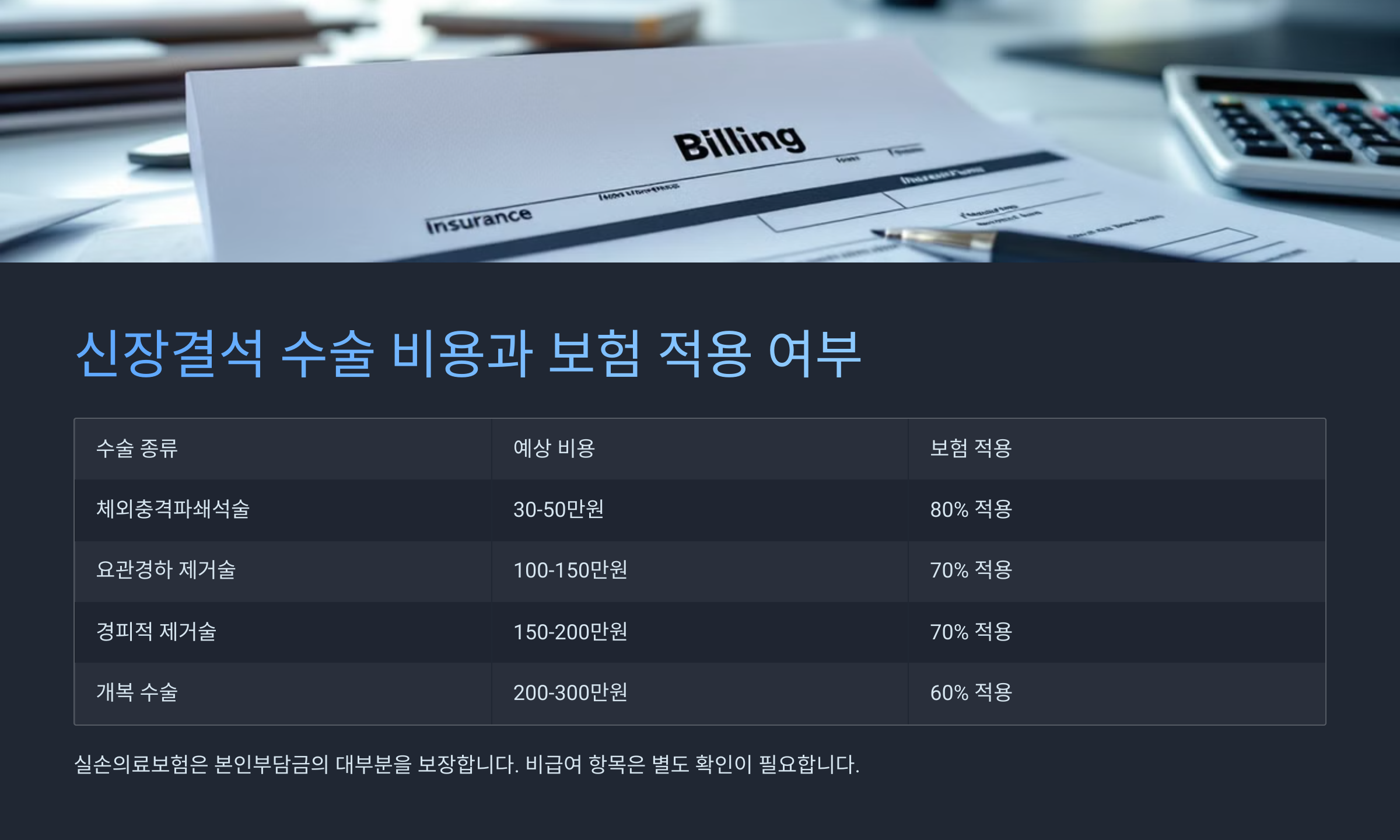 💳 신장결석 수술 비용 비교