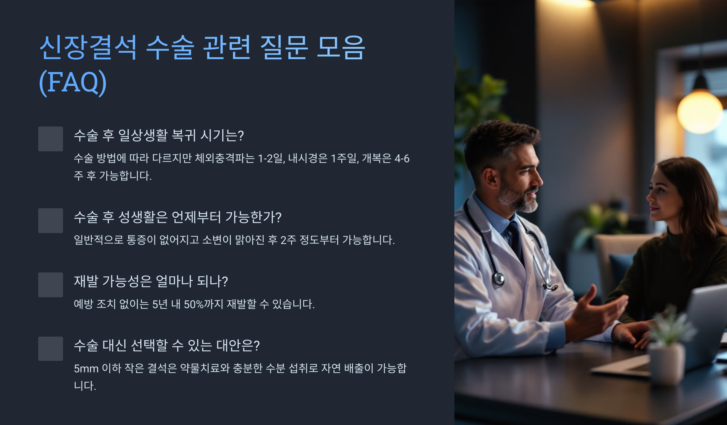 Q2. 신장결석 수술 후 회복 기간은 얼마나 걸리나요?
