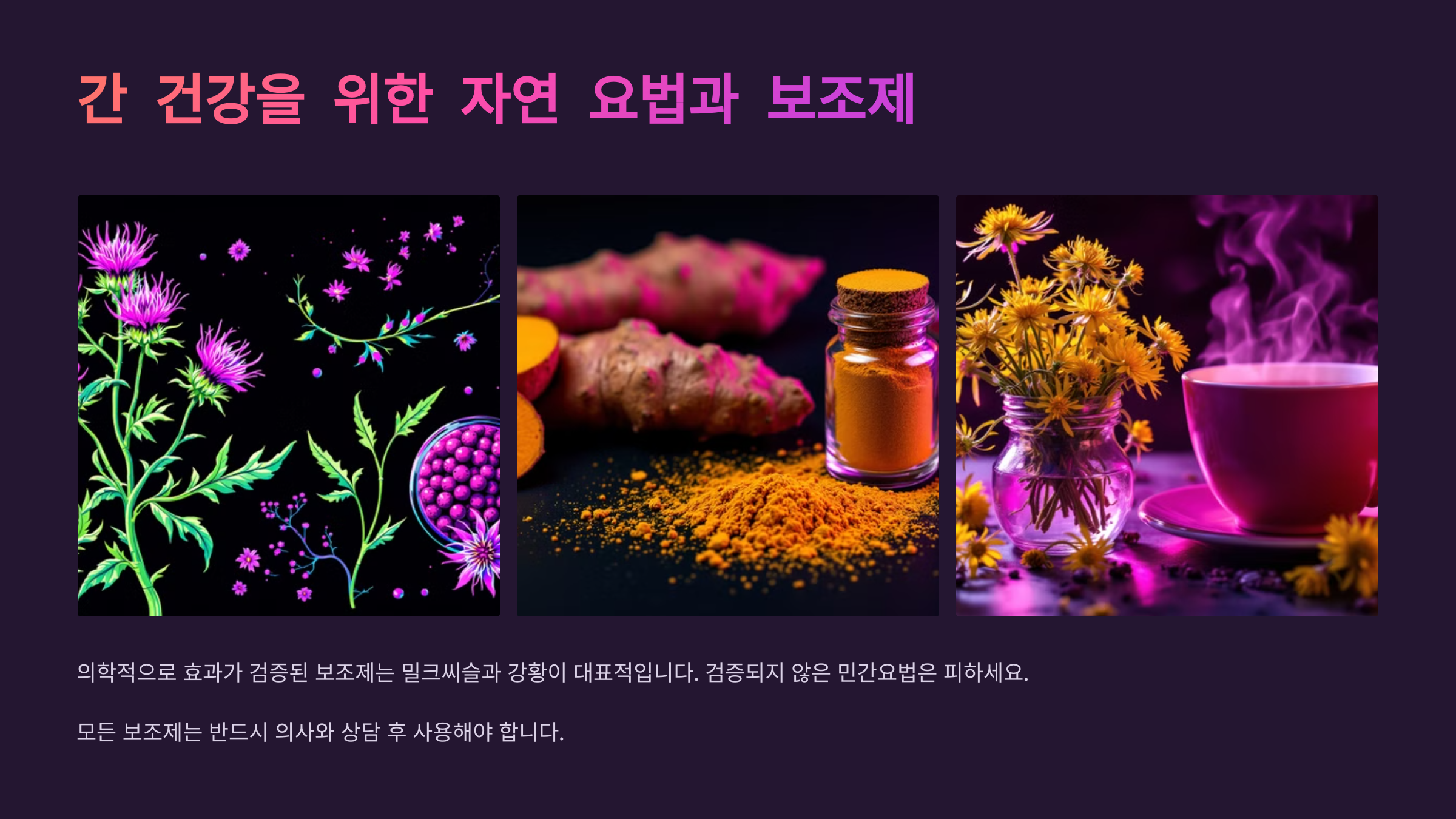 📢 다음 섹션에서 간 건강을 지키는 자연 요법과 보조제에 대해 알아볼게요!