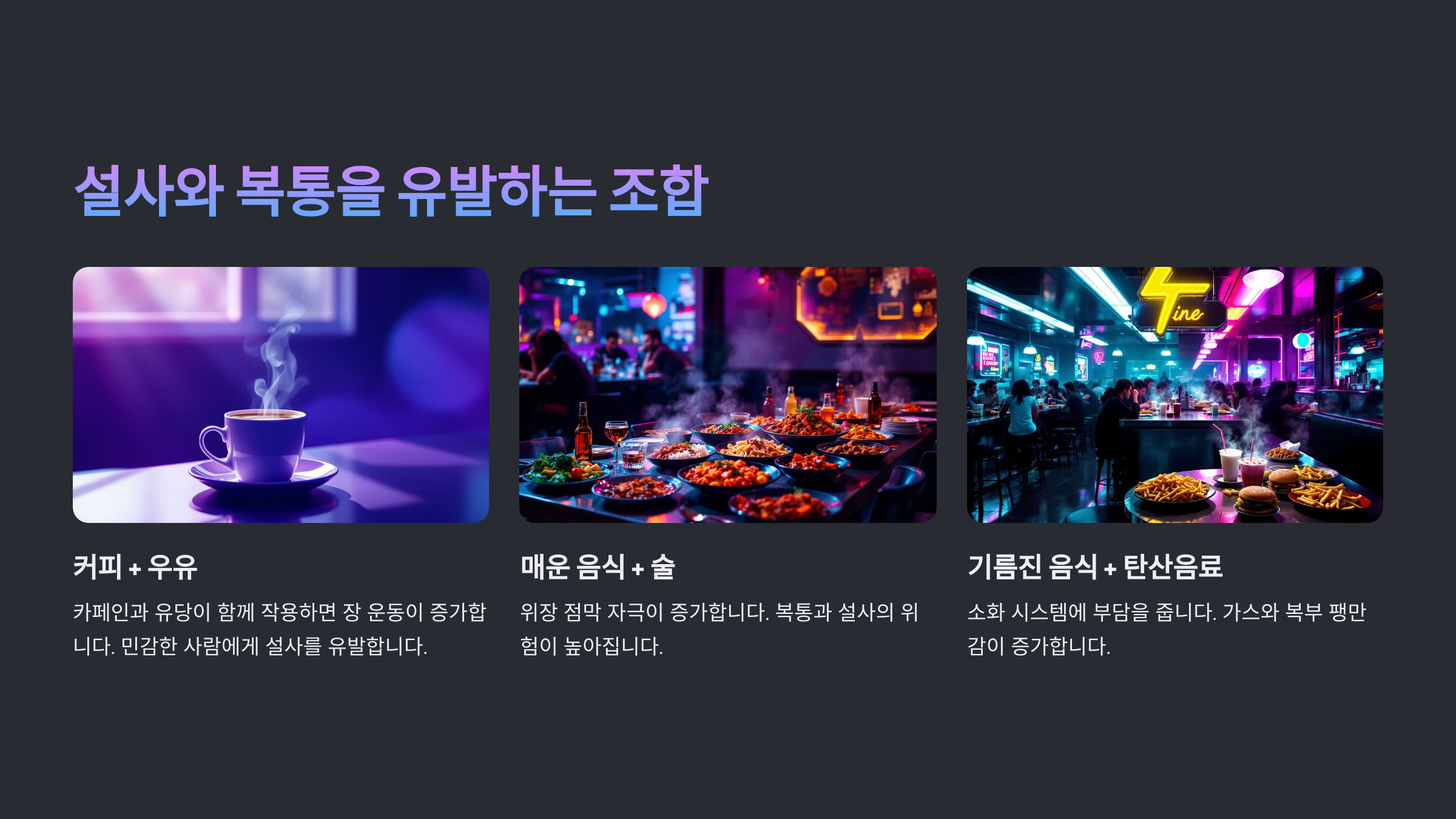 | 음식 조합 | 설사·복통 유발 원인 |