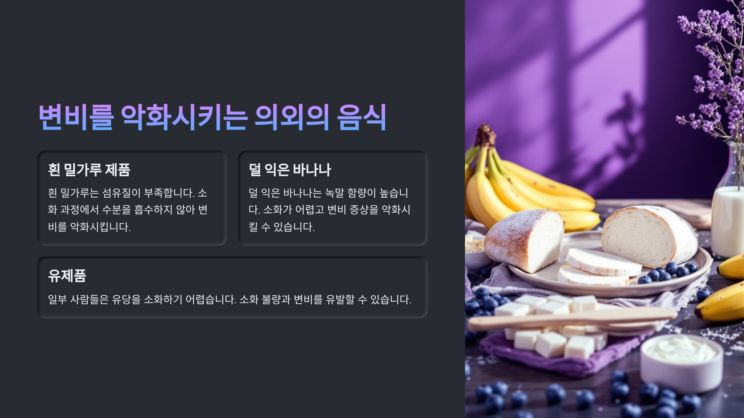 이제 변비를 악화시키는 의외의 음식에 대해 알아볼까요? 🍠