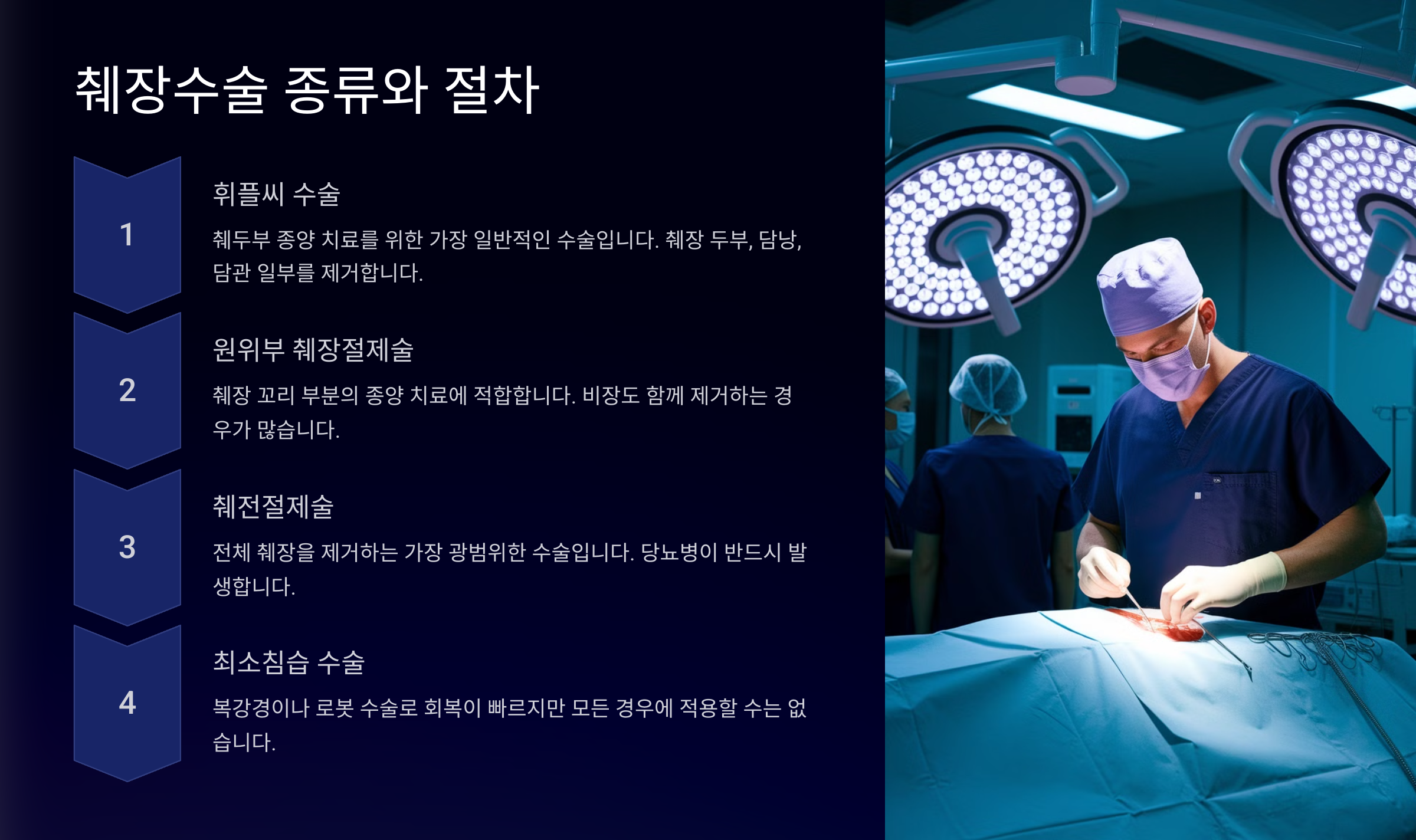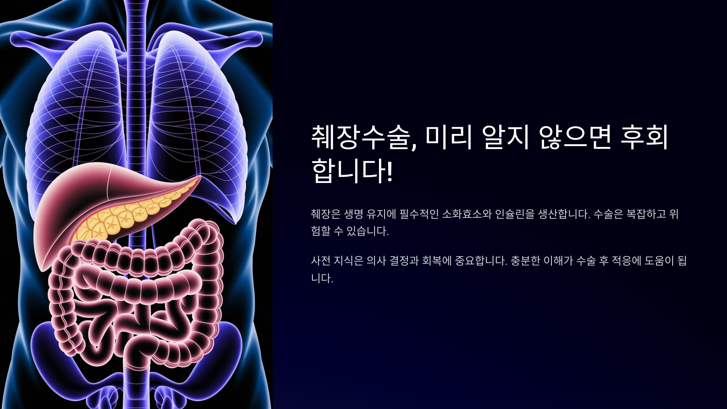 📢 이제부터 본격적으로 췌장수술의 종류, 회복 과정, 합병증 예방, 식단 관리 등 중요한 정보를 자세히 알아볼게요!