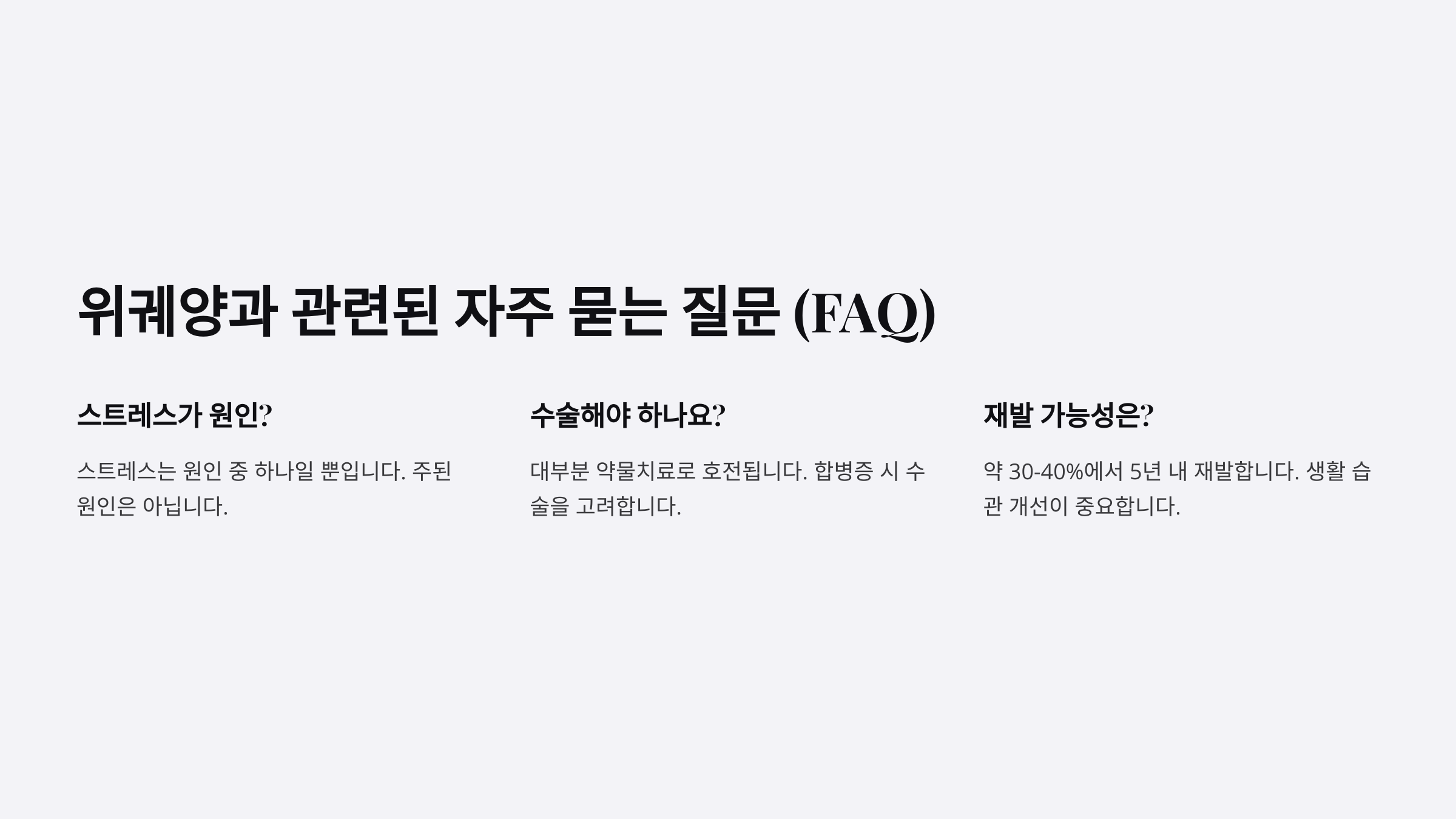 마지막으로, 위궤양과 관련해서 사람들이 가장 많이 궁금해하는 질문들을 정리해볼게요! ❓