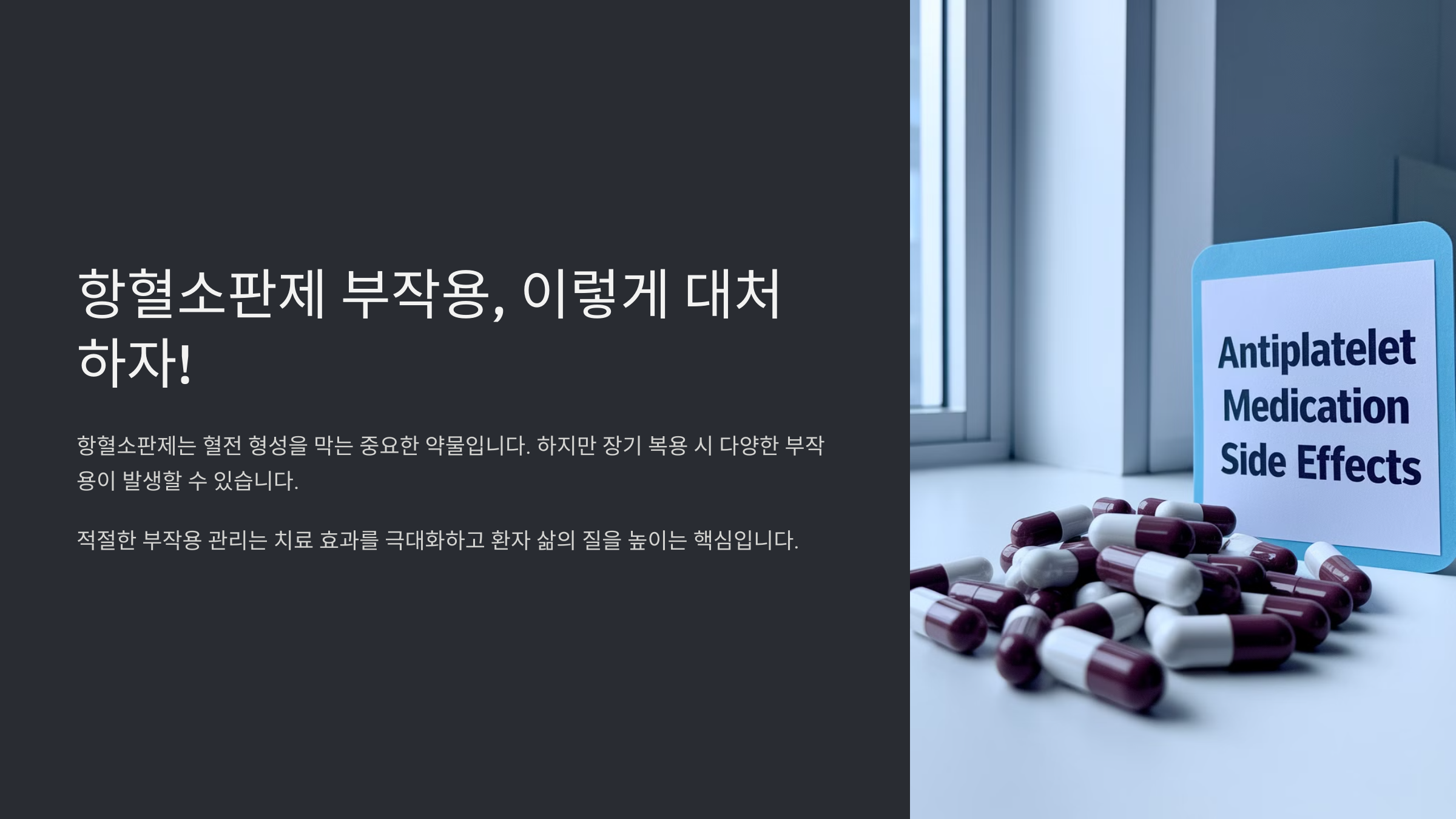 🚀 이제 다음 내용도 확인해볼까요? 계속해서 항혈소판제의 다른 부작용과 대처법을 알아볼게요.