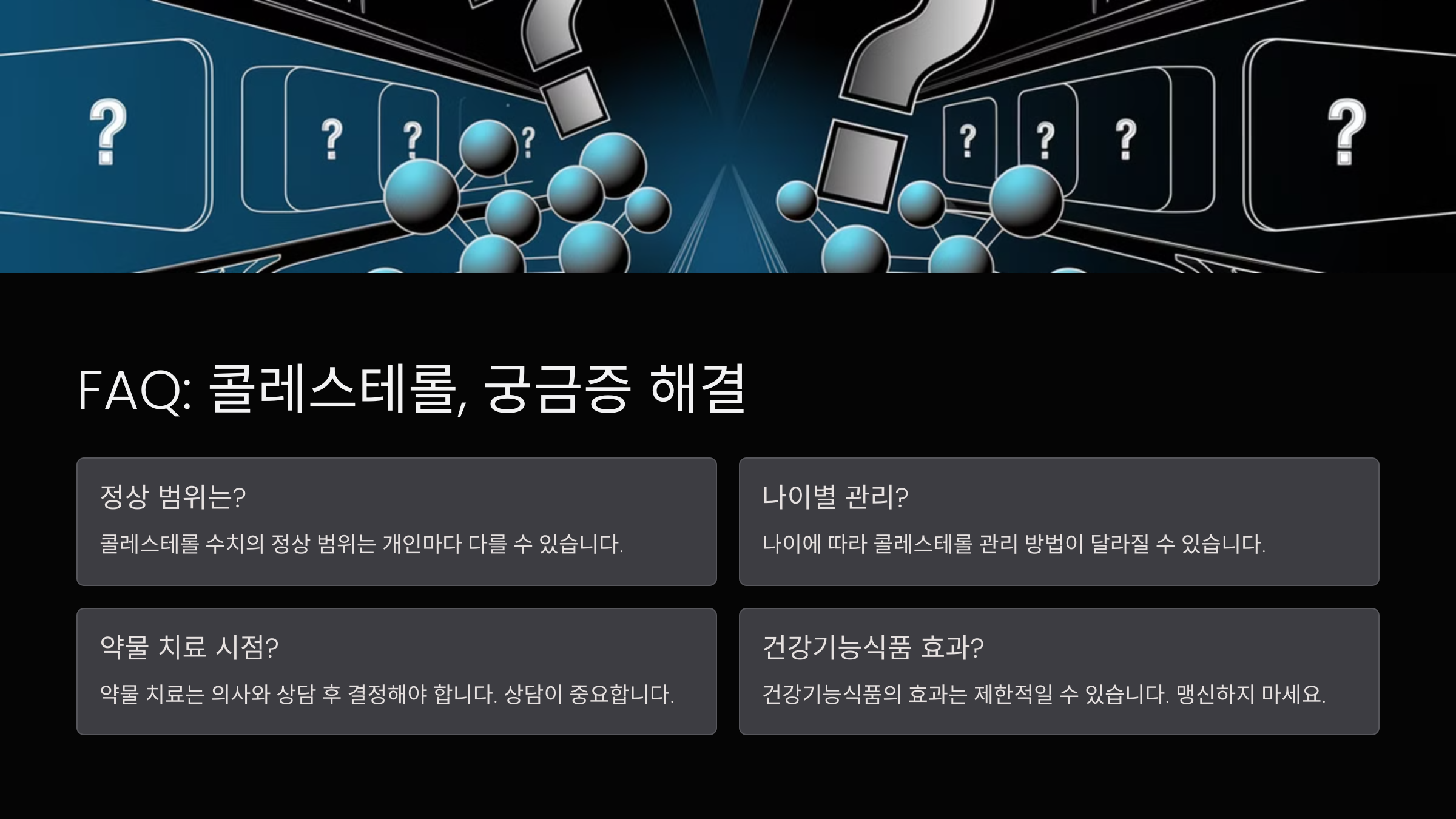 마지막으로, 혈관 건강과 콜레스테롤에 대해 사람들이 자주 묻는 질문들을 정리해봤어요. 궁금했던 점이 있다면 확인해 보세요! 😊