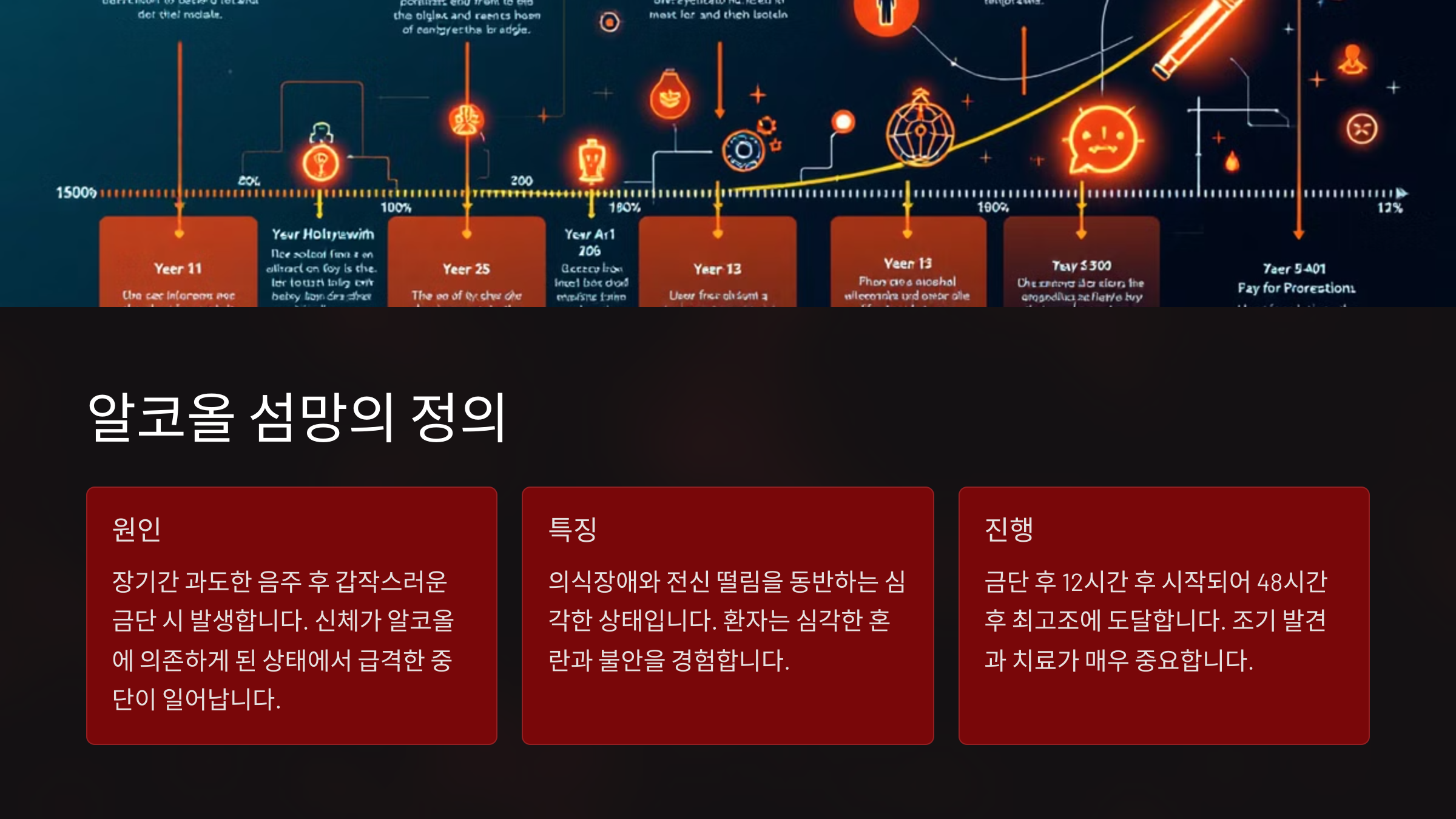 | 발생 시기 | 금주 후 수 시간 내 | 보통 48~72시간 후 |