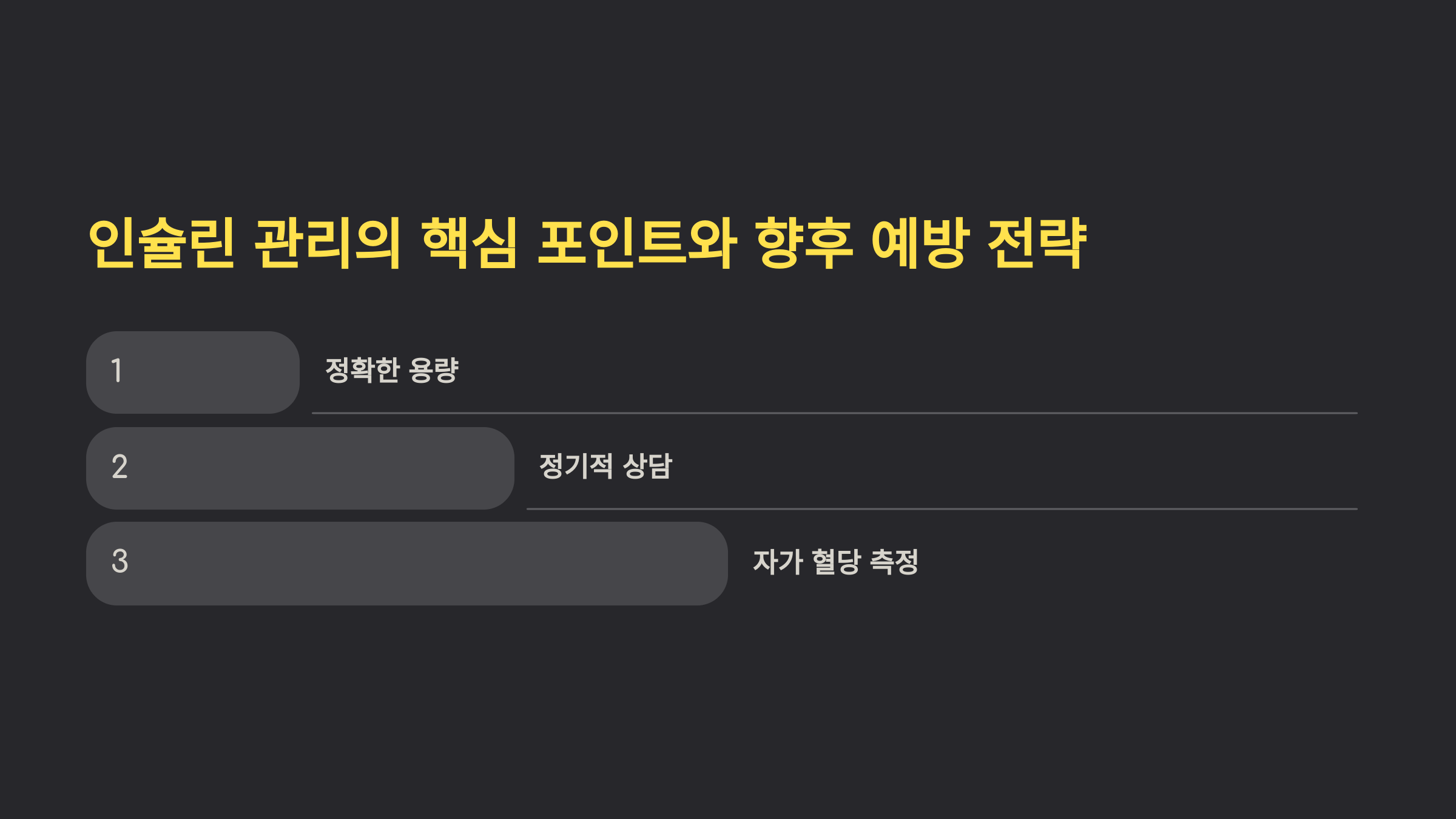 A4. 인슐린을 맞기 전에 반드시 혈당을 체크하고, 의료진이 정해준 용량을 준수하세요. 식사를 거르지 않는 것도 중요해요.