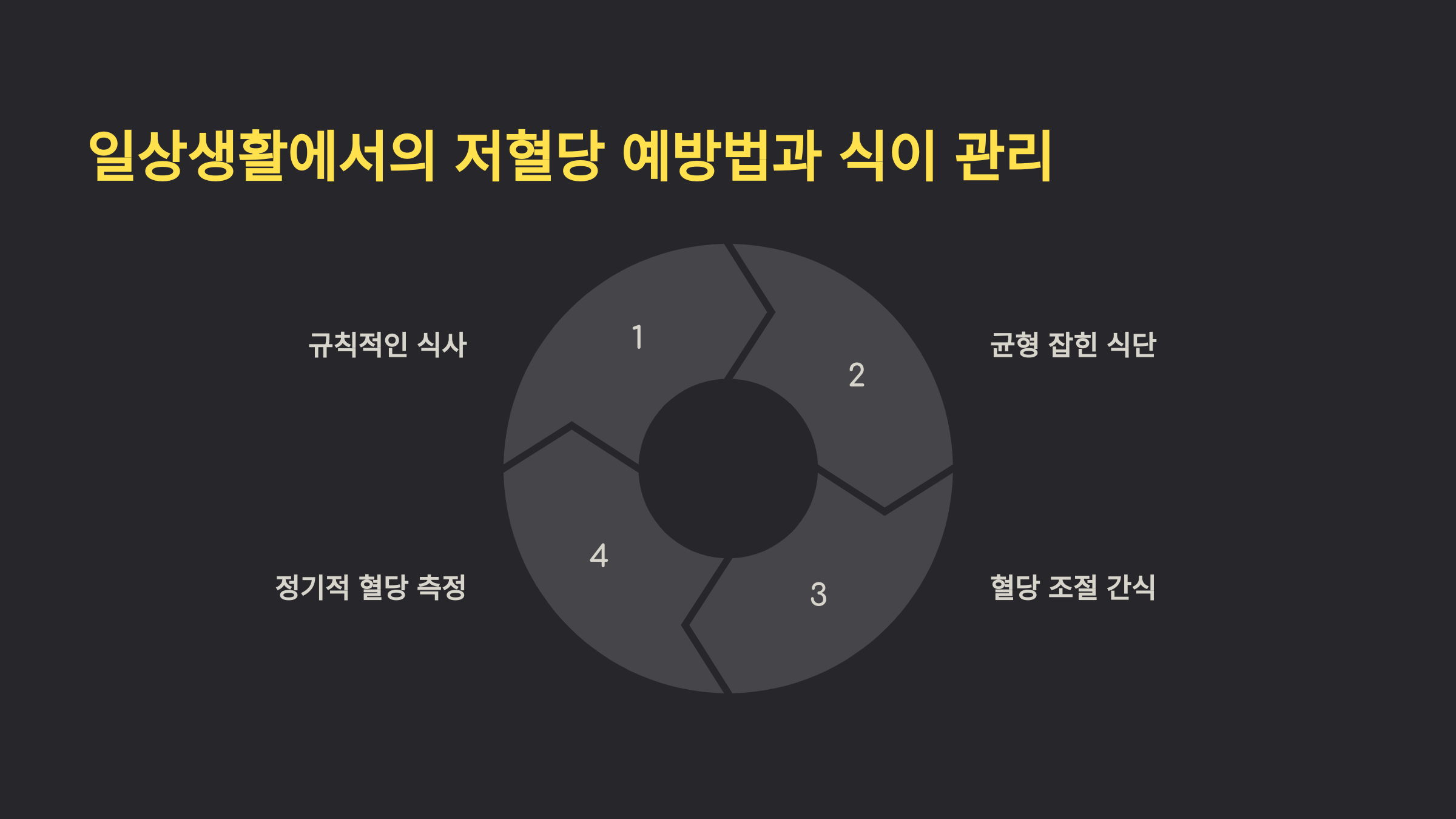 저혈당을 예방하려면 꾸준한 식사 습관과 균형 잡힌 영양 섭취가 중요해요. 특히 당뇨 환자는 혈당이 급격히 변하지 않도록 일정한 패턴을 유지하는 것이 핵심이에요.