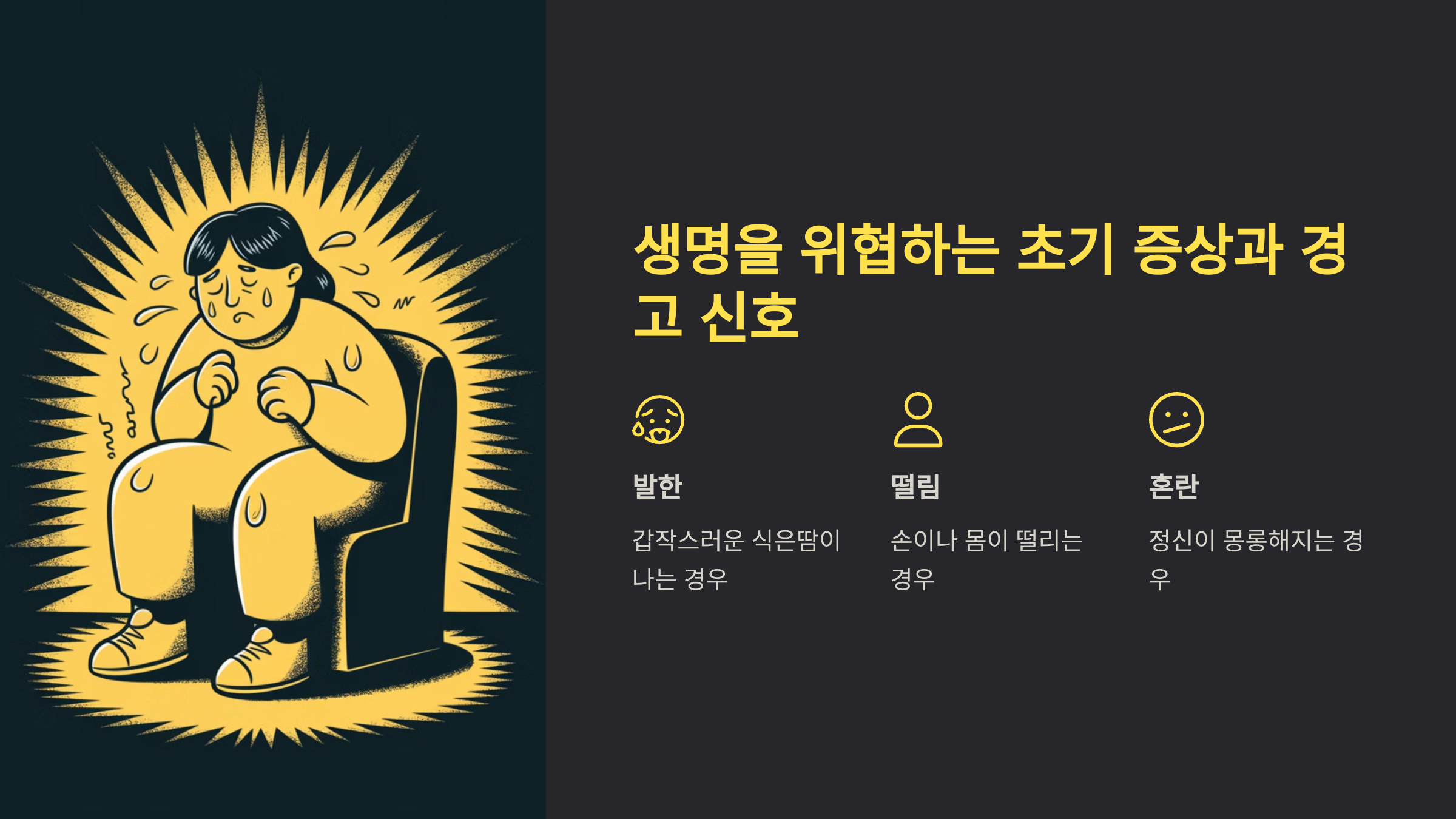 초기 증상은 비교적 가벼운 수준에서 시작돼요. 하지만 방치하면 신경계와 뇌 기능이 손상되면서 점점 위험한 단계로 진행될 수 있어요. 일반적으로 저혈당 쇼크의 초기 증상은 다음과 같아요.
