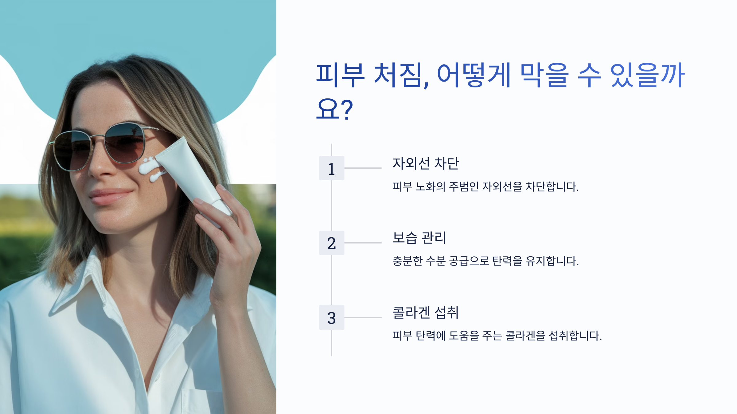 | 자외선 차단 | 자외선이 콜라겐을 파괴하므로 SPF 30 이상 필수 |
