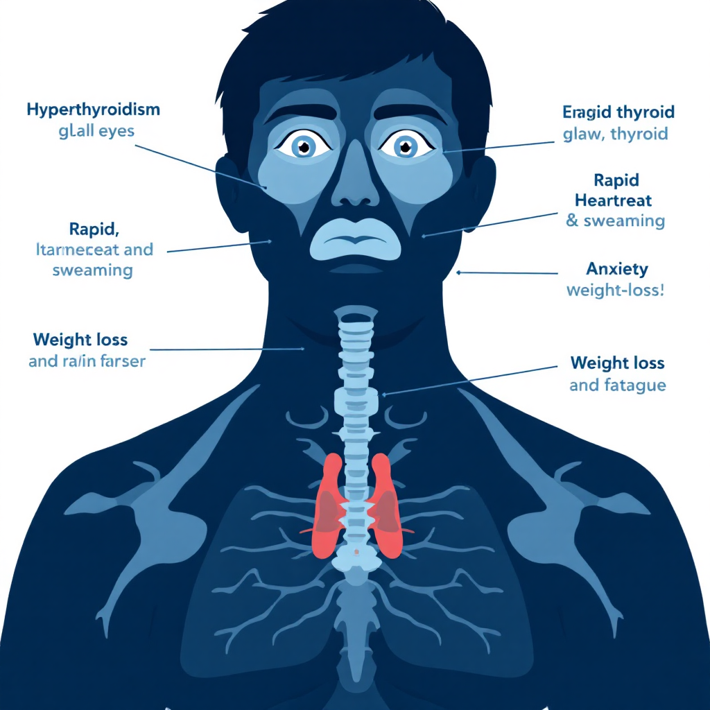 갑상선 기능 항진증은 자가면역 질환의 일종으로 우리 몸의 대사율을 높이며 다양한 신체적, 정신적 증상을 유발하는 질환이에요. 가장 흔한 원인으로는 '그레이브스병'이 있고, 이로 인해 체중 감소, 심계항진, 불안, 손떨림, 더위에 대한 민감성 등이 나타나요.