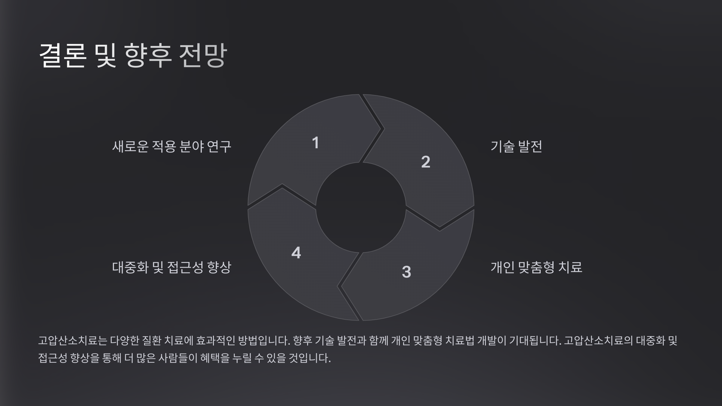 이처럼 고압산소치료는 단순한 의료 치료를 넘어서 **건강과 웰빙을 위한 혁신적인 솔루션**으로 자리 잡고 있어요. 앞으로도 활용 범위가 더욱 넓어질 것으로 기대돼요! 😊