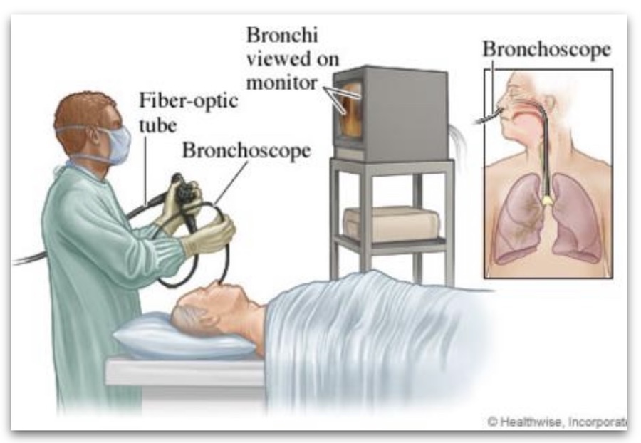 환자가 굴곡성 기관지경 검사를 받는 경우 기관지경을 코나 입을 통해 기도로 삽입합니다. 의사는 기도와 폐에 이상이 있는지 검사하고 필요한 경우 조직 샘플을 채취하고나 이물질을 제거할 수 있습니다.