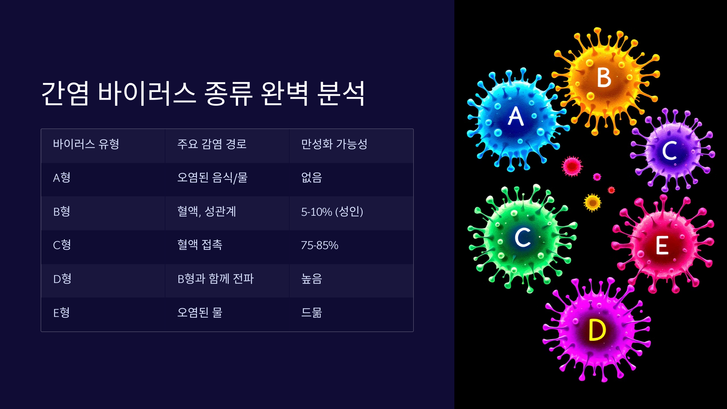 간염 바이러스는 단순히 '간염 걸렸다'로 뭉뚱그릴 수 없어요. 어떤 바이러스인지, 급성인지 만성인지, 백신이 있는지 없는지에 따라 대처법이 전혀 다르기 때문이에요. 그래서 정확한 분류와 이해가 꼭 필요하답니다!