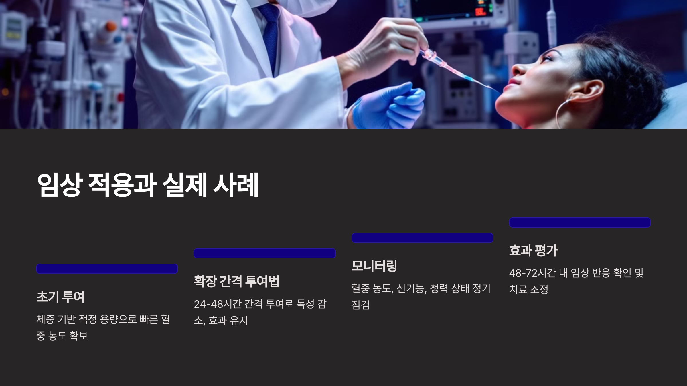 결국 부작용을 줄이려면 환자의 나이, 체중, 신장 기능, 감염 부위까지 모두 고려해 맞춤형 용량 설정이 필수예요. 특히 혈중 약물 농도(TDM: Therapeutic Drug Monitoring)를 통해 안전한 범위 내에서 투여하는 게 중요하답니다. 🧪