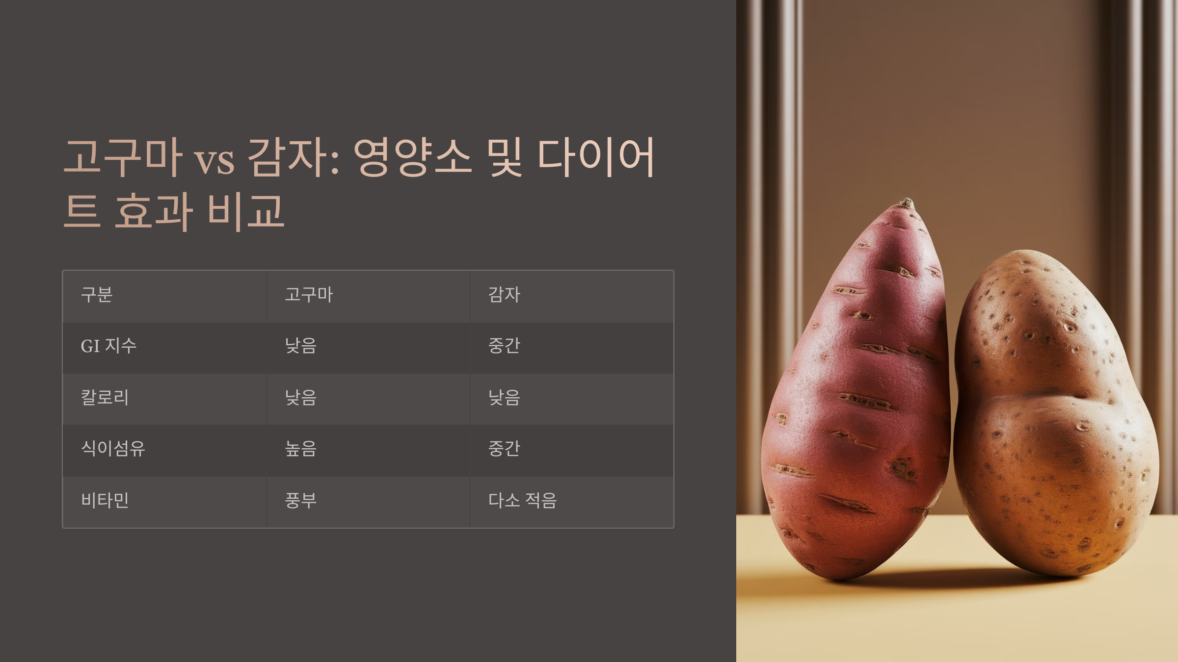 🥔 감자 vs. 고구마 비교표