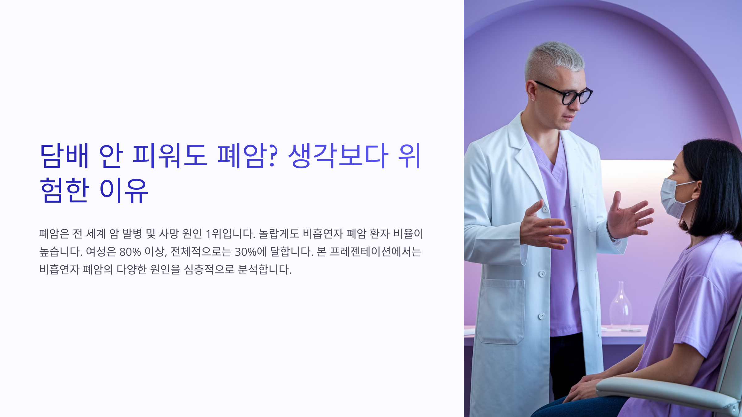 많은 사람이 폐암을 흡연자만 걸리는 병으로 생각하지만, 사실 비흡연자도 폐암에 걸릴 가능성이 있어요. 최근 연구에 따르면 폐암 환자의 약 20%는 담배를 피운 적이 없는 사람이라고 해요. 그렇다면 담배를 피우지 않는 사람들은 왜 폐암에 걸리는 걸까요?