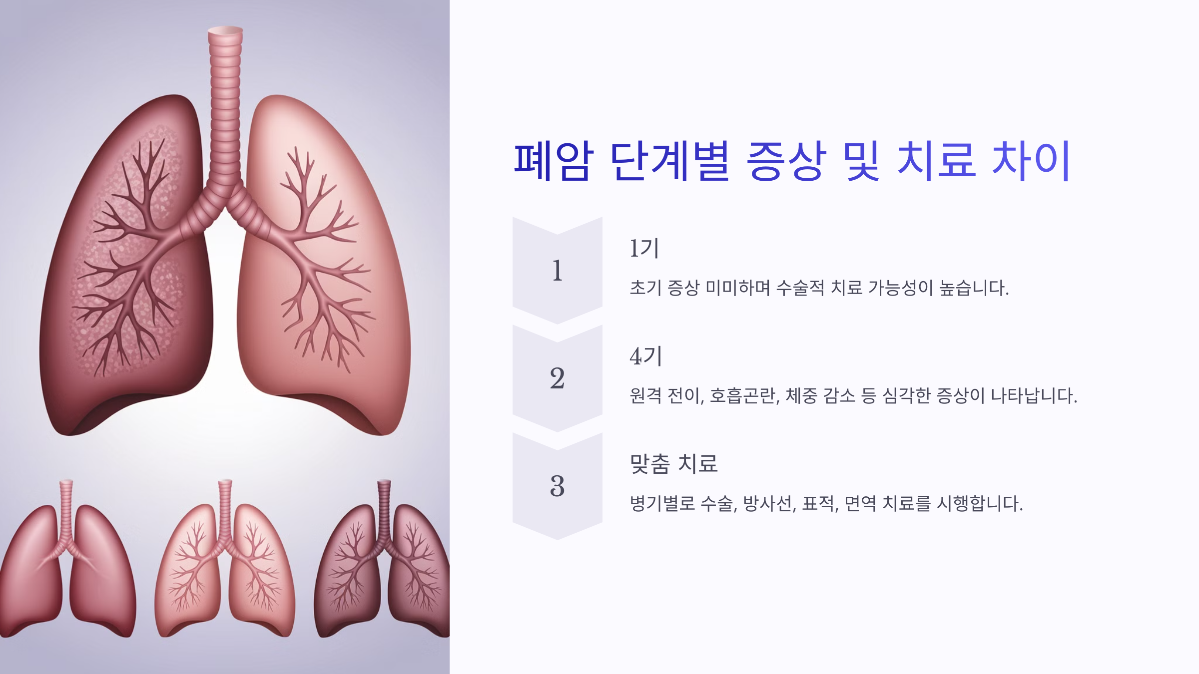 폐암은 조기에 발견하는 것이 중요해요. 하지만 초기 폐암은 별다른 증상이 없어서 많은 사람이 뒤늦게 병을 알게 되는 경우가 많아요. 폐암은 진행 단계에 따라 1기에서 4기로 나뉘며, 단계별로 증상과 치료법이 달라요.