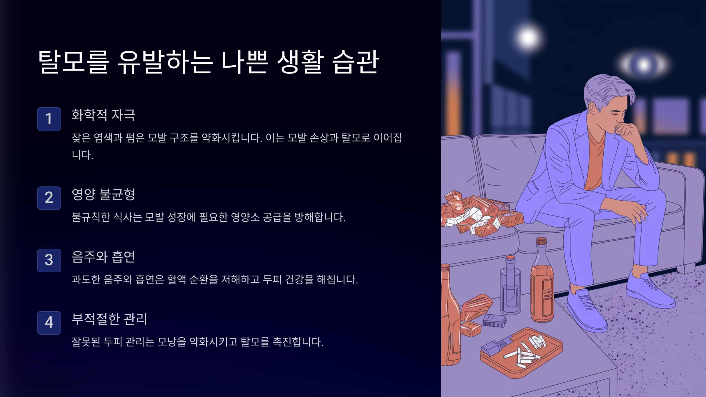 수면 습관만 개선해도 탈모를 예방할 수 있어요! 오늘부터 숙면을 위한 작은 변화들을 실천해 보세요. 😴✨