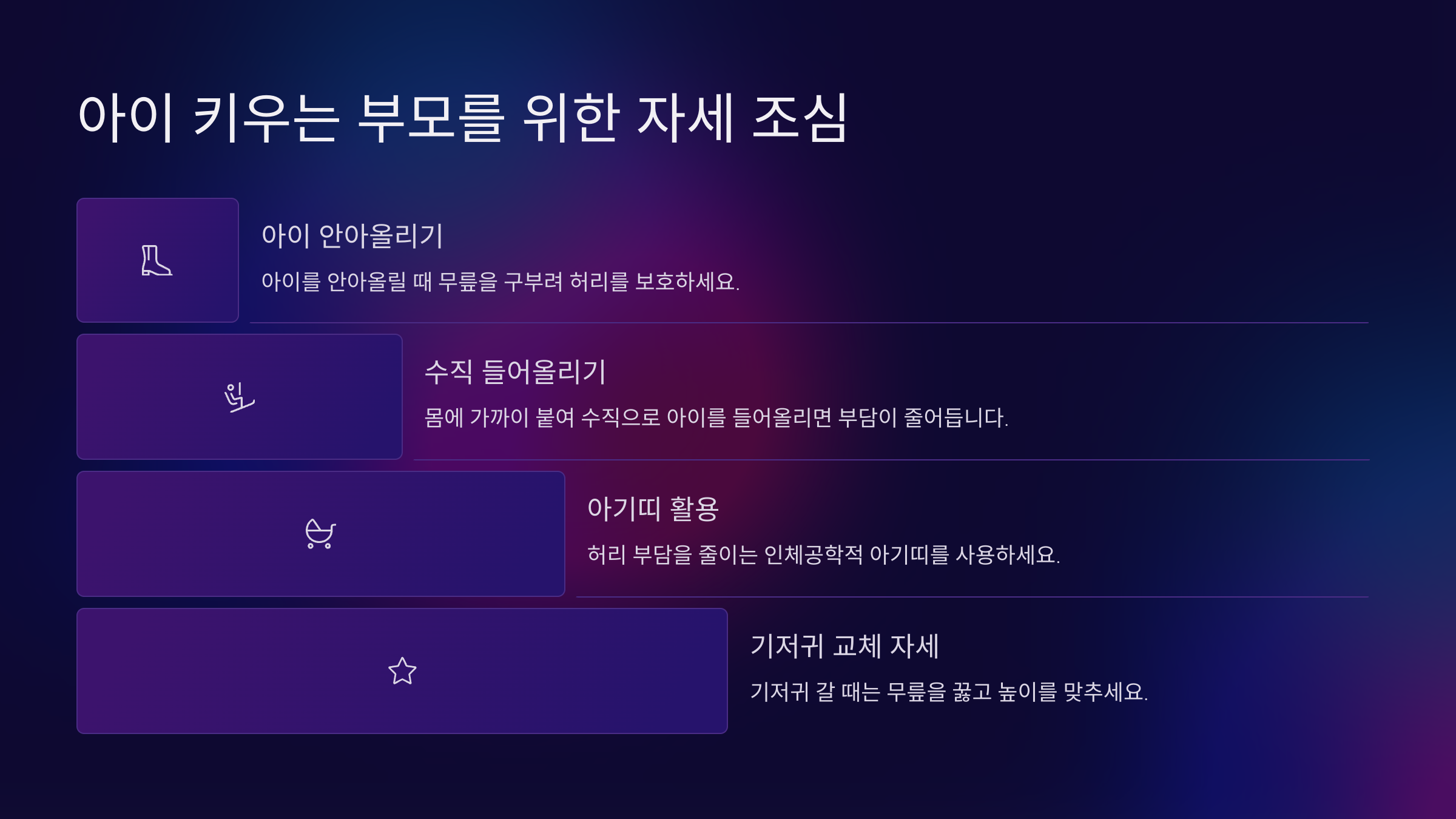 👶 육아 자세 조심 포인트