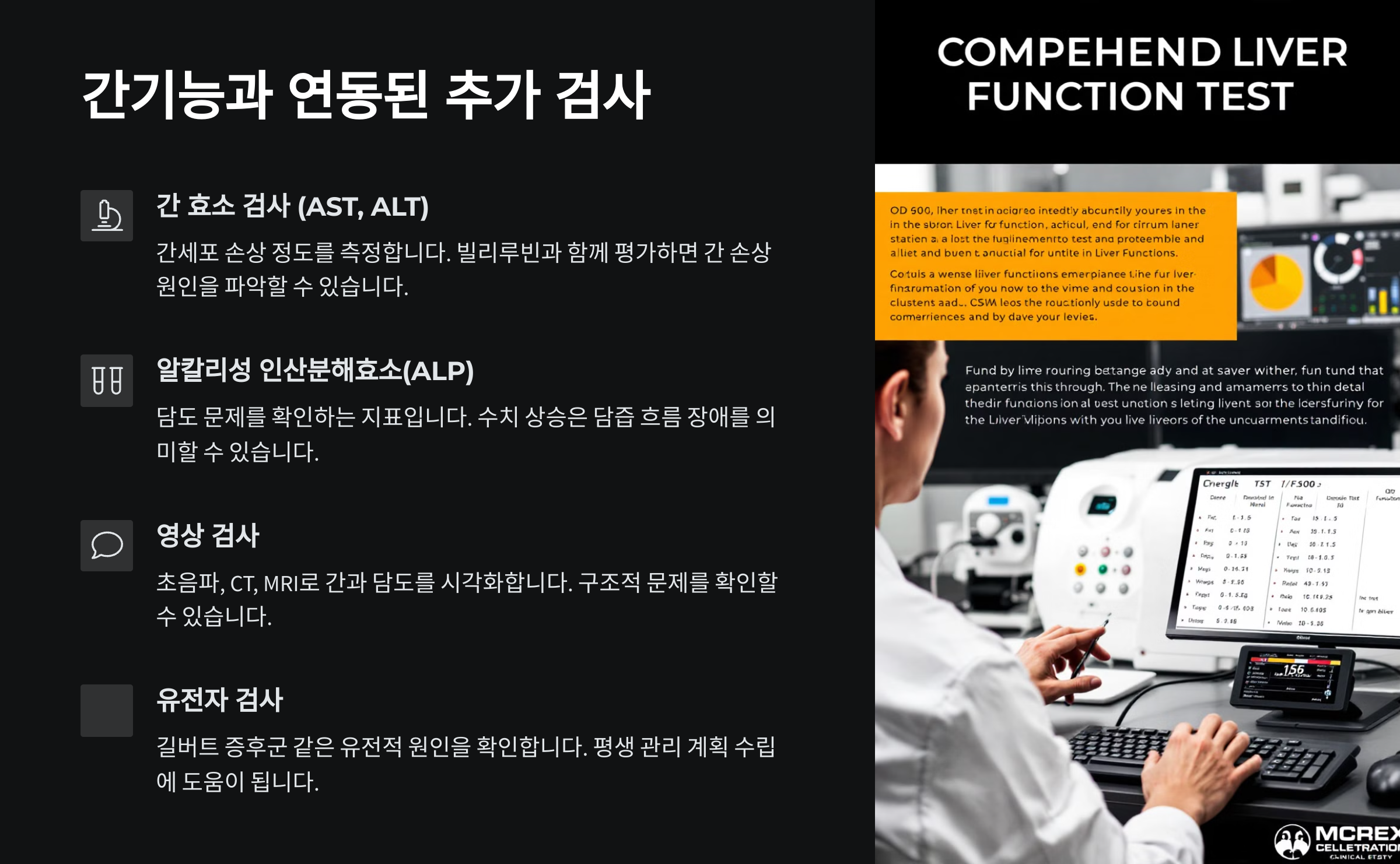 또한 혈청 단백질 검사, 프로트롬빈 시간 검사 등을 통해 간의 합성 능력을 평가할 수 있어요. 다양한 검사를 통해 간 건강 상태를 종합적으로 파악하는 것이 매우 중요하답니다.