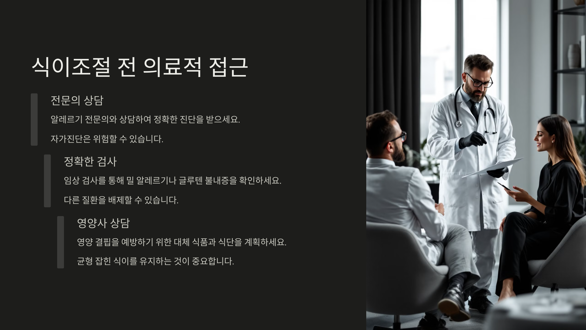 이렇듯 알레르기, 불내증, 자가면역 질환은 서로 다르기 때문에, 병원에서 정확한 검사를 통해 내 몸이 어떤 반응을 하는지 알아보는 게 중요해요. 자가 판단만으로 식단을 제한하면 오히려 영양 불균형을 초래할 수 있답니다.