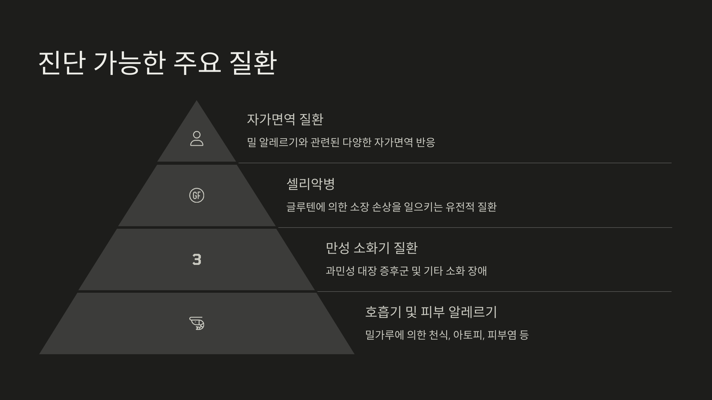 의심되는 질환에는 밀 알레르기, 글루텐 불내증, 셀리악병 외에도 과민성 대장 증후군(IBS), 위장염, 만성 피부질환 등이 있어요. 밀가루가 직접적 원인이 아니더라도 소화기관에 영향을 주는 배경 질환일 수 있으니 함께 확인하는 게 좋죠.
