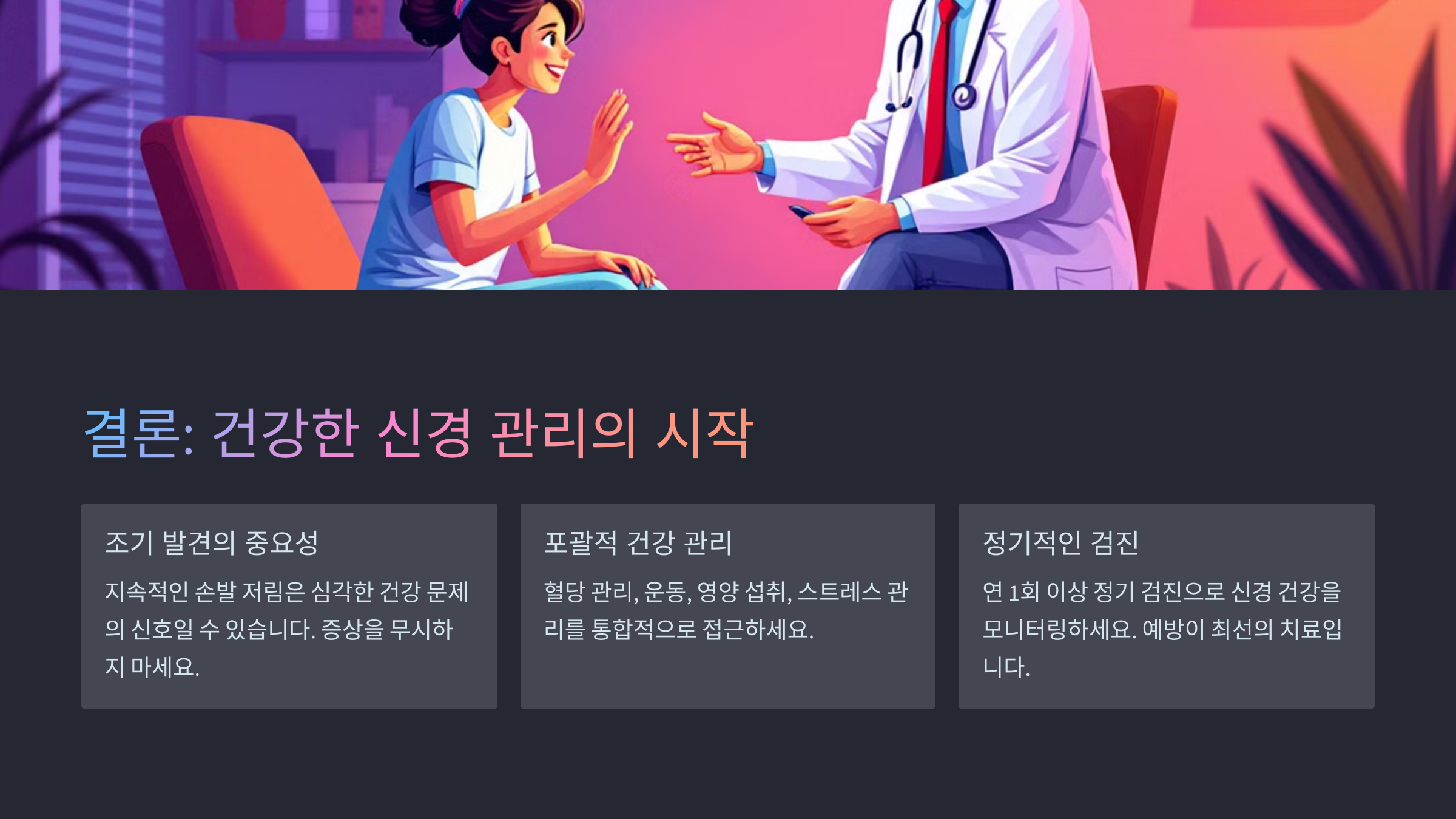 밤에 나타나는 손발 저림은 단순하지 않아요. 당뇨병성 신경병증, 경추디스크, 손목터널증후군 같은 특정 질환과도 연결될 수 있어서 조기에 원인을 찾는 게 중요해요. 제가 생각했을 때 이 부분을 가볍게 넘기면 안 되는 이유예요.