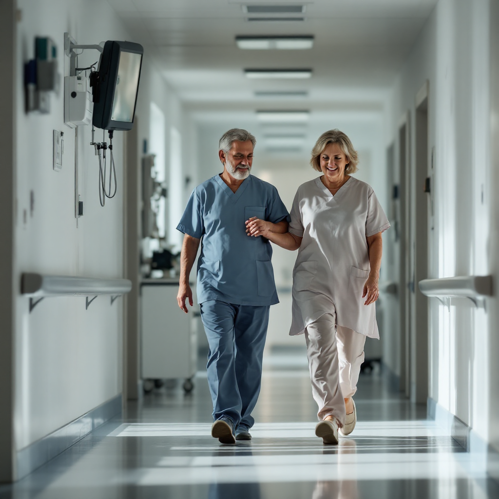 A4. 처음 며칠간은 반드시 보호자나 간호사가 동행해야 해요. 마취 후 잔여 효과, 진통제로 인한 졸음, 전신 쇠약감 등으로 낙상 위험이 높기 때문이에요. 환자 상태가 안정되고 충분히 회복되면 의료진 판단하에 혼자 걸을 수 있게 돼요. 보통 수술 후 2-3일 정도면 단거리는 혼자 걸을 수 있게 되지만, 개인차가 있어요.