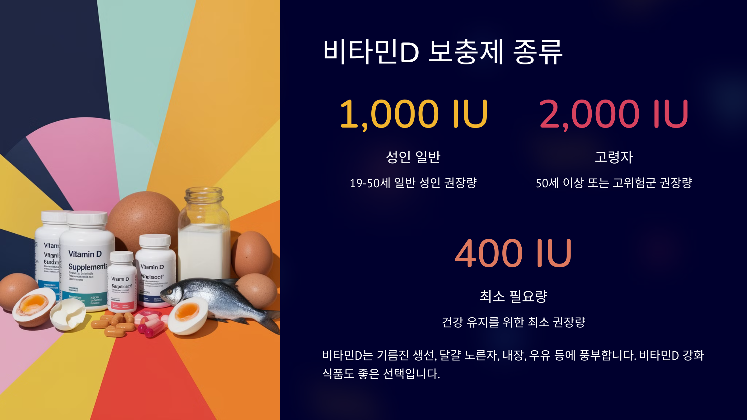 보충제는 어디까지나 ‘보조’예요. 식단과 햇빛 노출을 기반으로 한 건강한 생활 습관이 먼저고, 보충제는 그 부족분을 채워주는 개념으로 접근해야 해요.