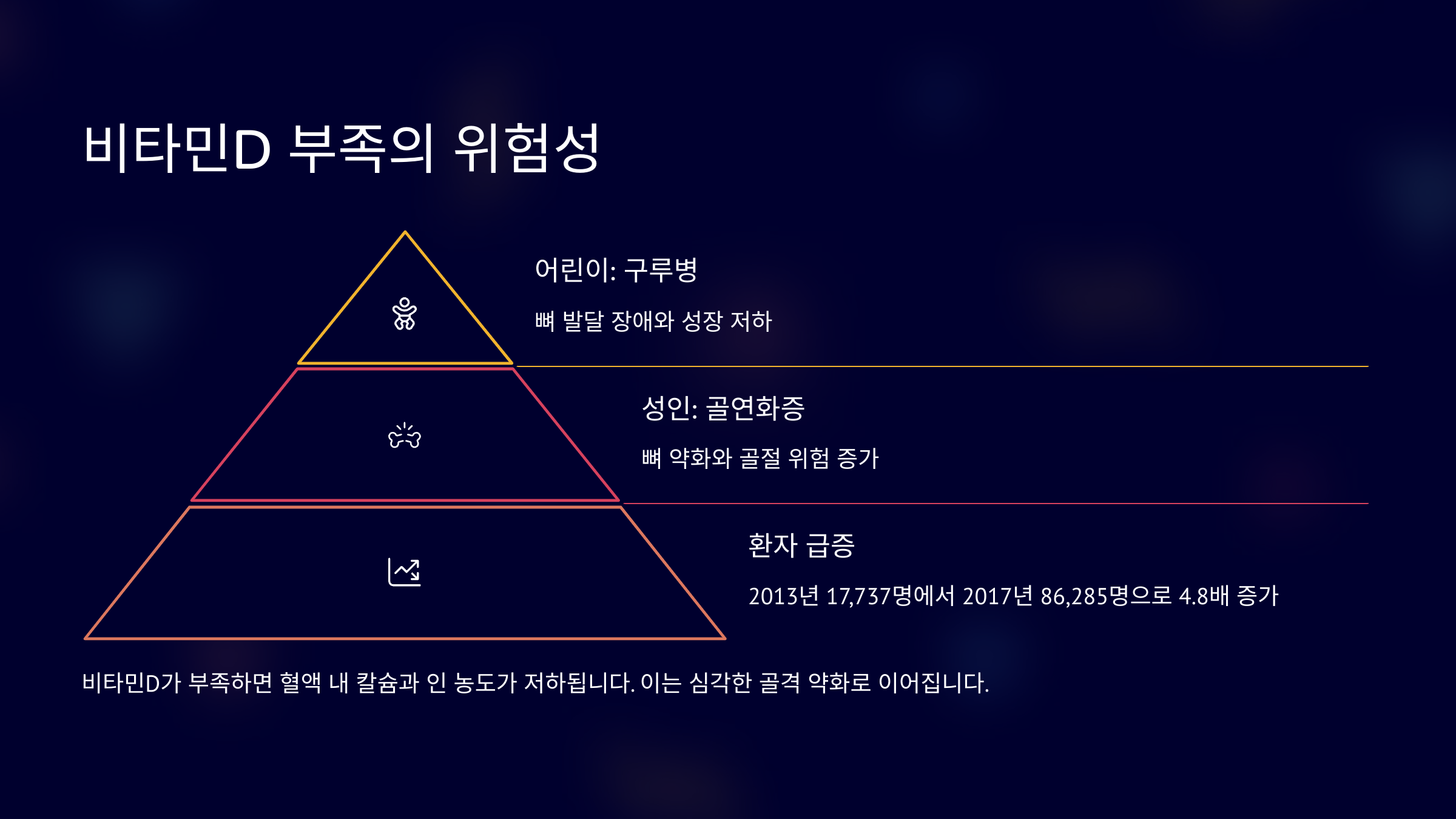 비타민D는 단순한 영양소가 아니라 뼈 건강과 면역력에 핵심적인 역할을 해요. 그런데 현대인들은 실내 생활이 많아 자외선 노출이 부족해지면서 비타민D 결핍이 흔하다고 해요.