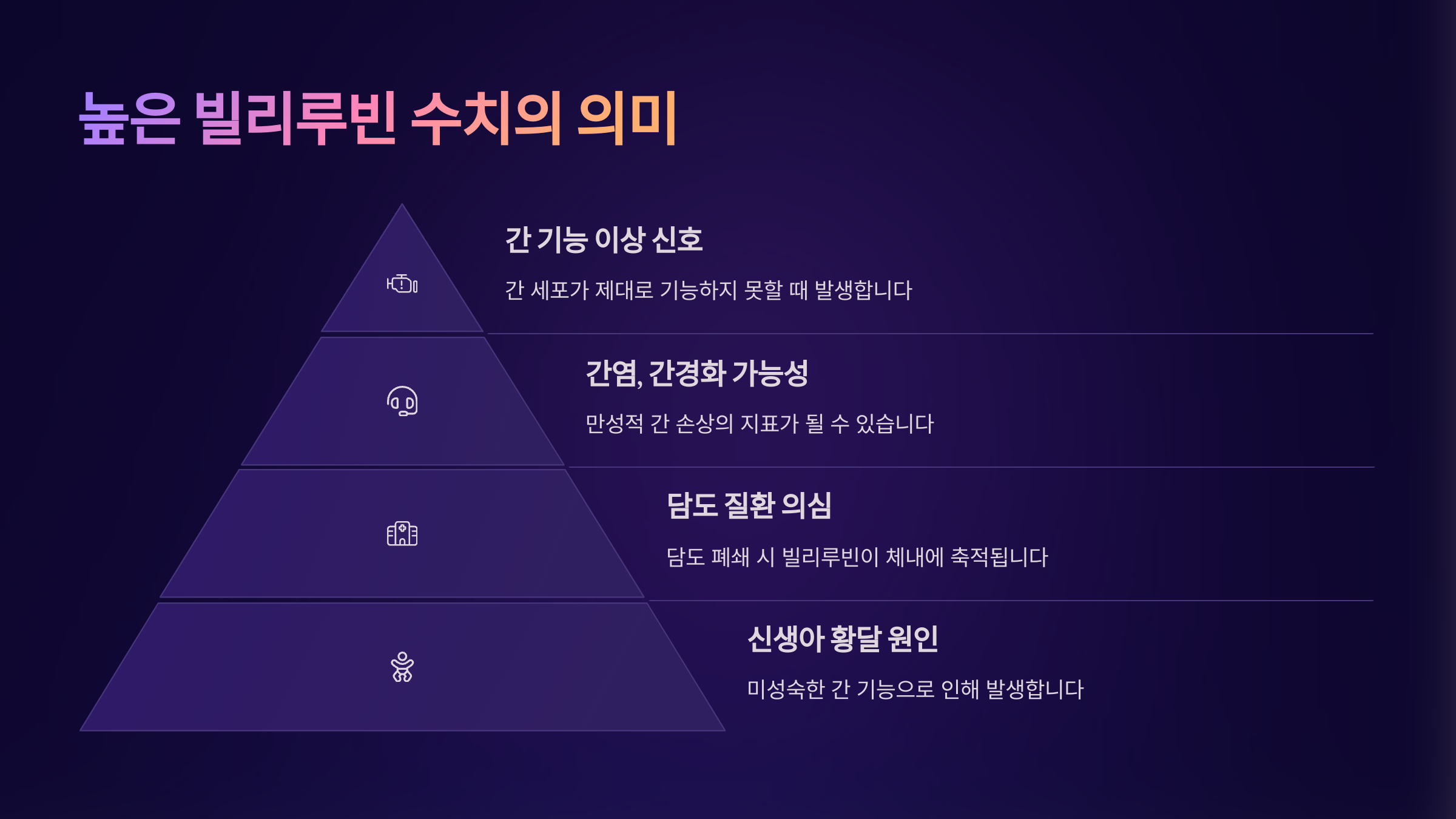 특히 총 빌리루빈이 3.0mg/dL을 넘는다면, 간염이나 담석, 간경변 등도 의심해볼 수 있으니 전문의 상담이 중요해요. 자가 진단보다는 정확한 원인을 찾는 게 더 중요하겠죠? 💡