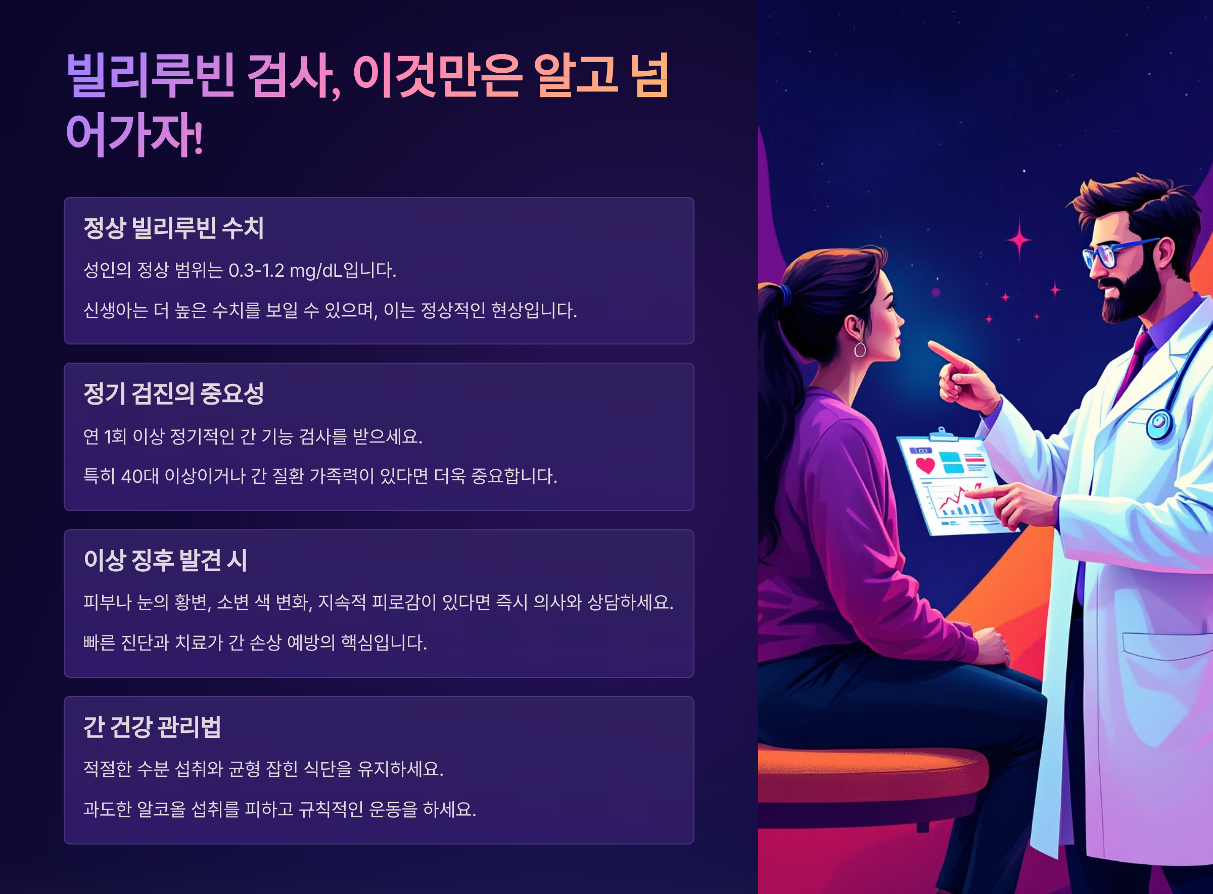 정확히 알면 대처도 쉬워요. 빌리루빈은 병이 아니라 '몸 상태를 보여주는 경고등'이라는 점을 꼭 기억하세요. 수치를 통해 내 몸속 상태를 미리 파악할 수 있는 기회인 거죠! 🧡