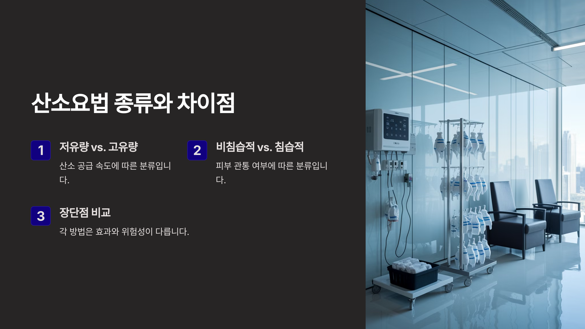 다음으로는 산소요법의 다양한 종류와 차이점을 알아볼게요! 🚀
