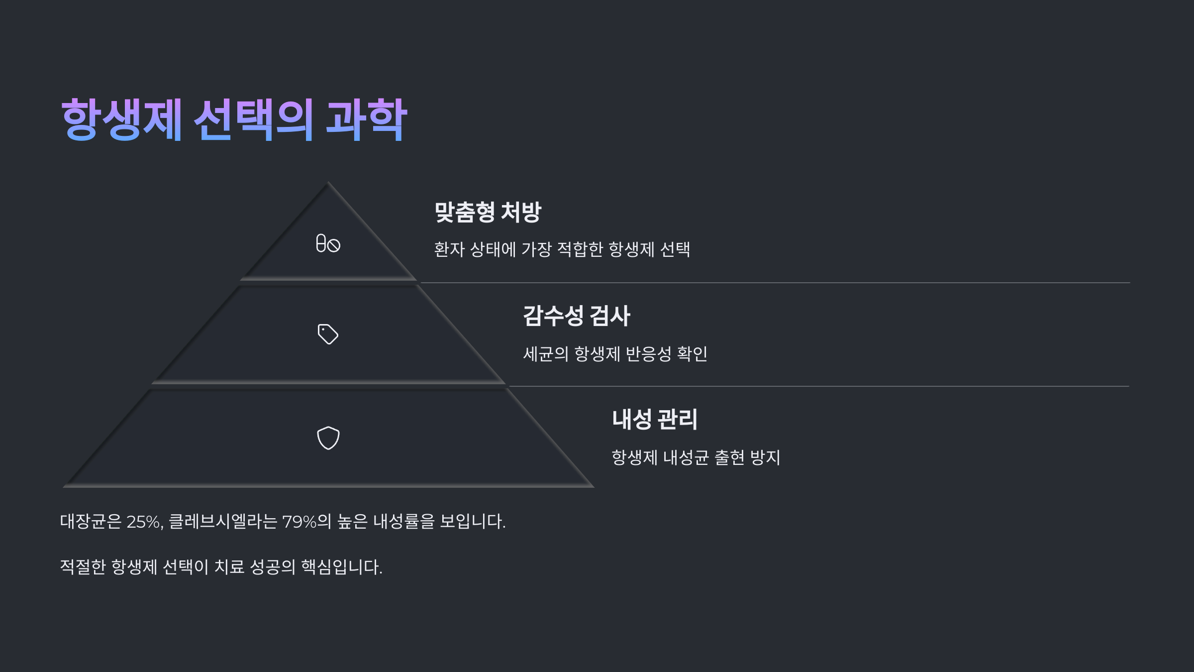 항생제를 선택할 때는 단순히 세균 종류만 보는 게 아니라, 그 균이 어떤 항생제에 반응하는지를 판단해야 해요. 그래서 감수성 검사가 꼭 필요하죠. 이 검사 결과에 따라 ‘이 약에는 내성 있음’, ‘이 약에는 민감함’이라고 표시되는데, 이게 치료 약물 선택의 기준이 돼요.