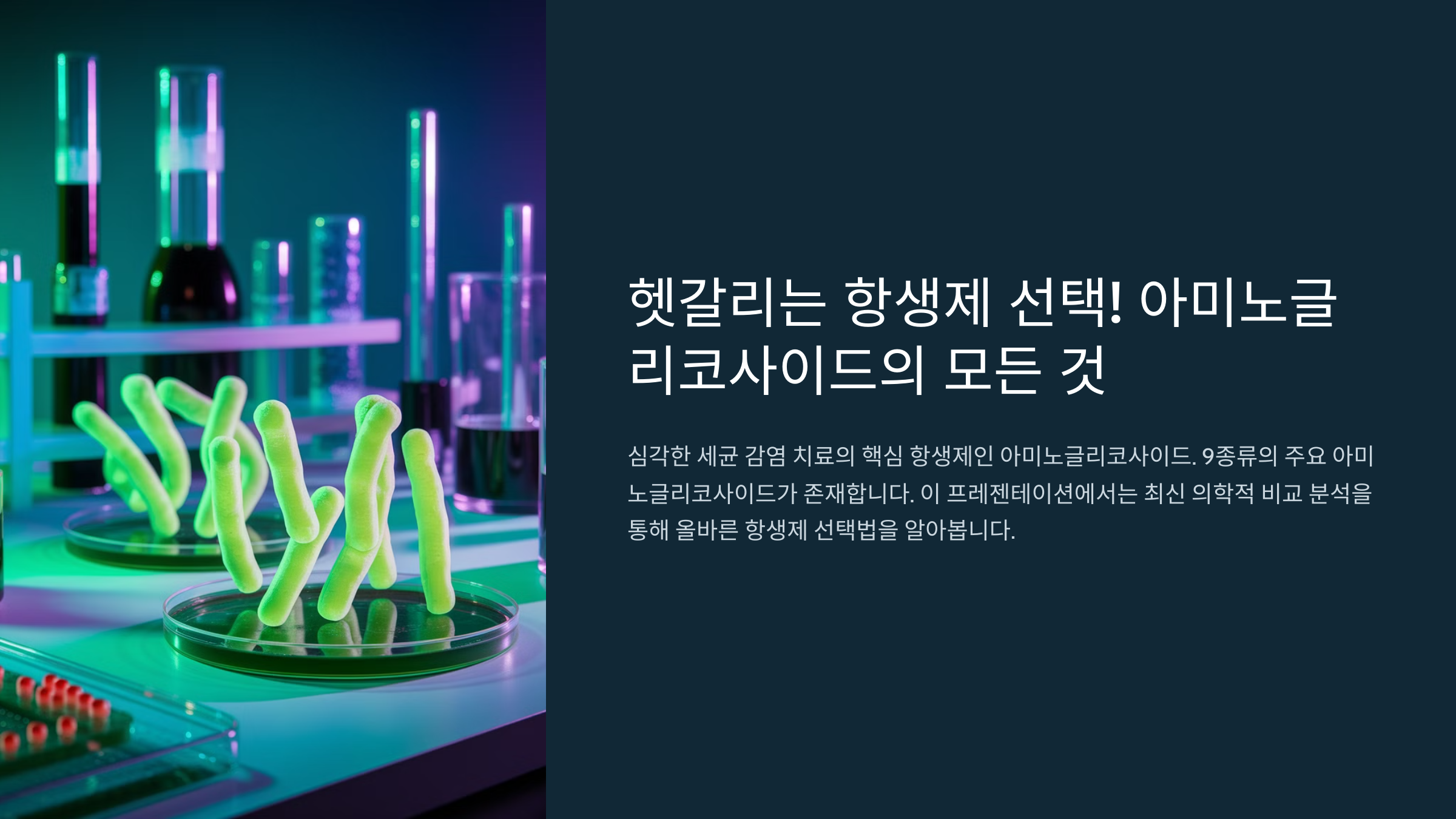 아미노글리코사이드는 강력한 살균력을 지닌 항생제로, 주로 그람음성균 감염에 많이 사용돼요. 특히 중증 패혈증이나 병원 내 감염 등에서 빠르게 세균을 제거해야 할 때 효과적인 선택지랍니다.