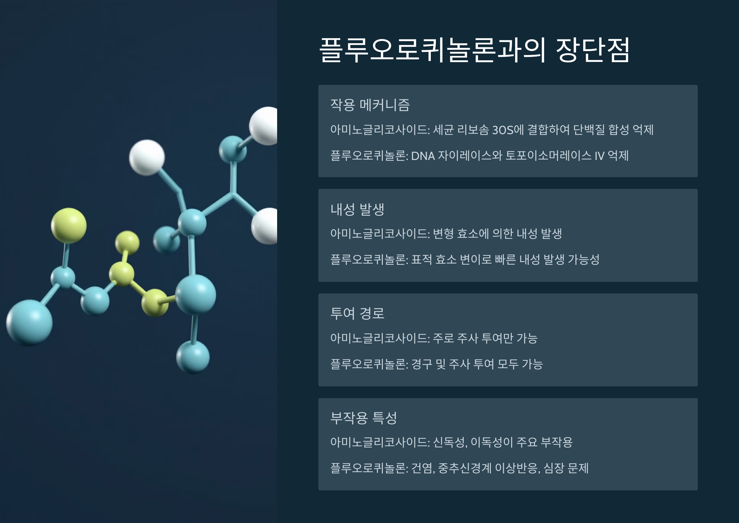 🔬 플루오로퀴놀론 vs 아미노글리코사이드 요약