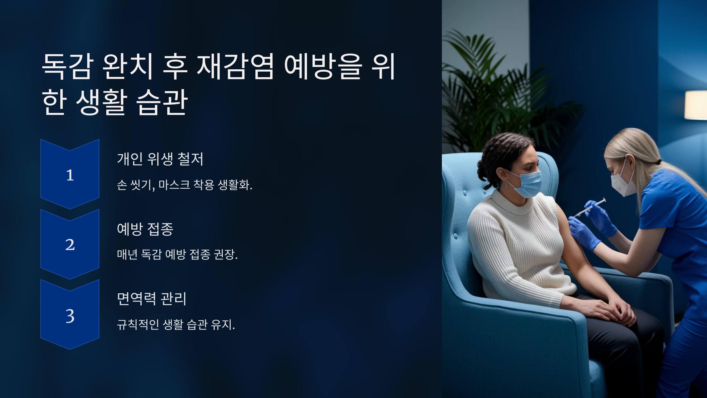 🏥 독감에서 회복됐다고 방심하면 안 돼요! 면역력이 완전히 정상으로 돌아오기까지는 시간이 필요하므로, 재감염을 막기 위한 예방 습관을 유지하는 것이 중요하답니다.