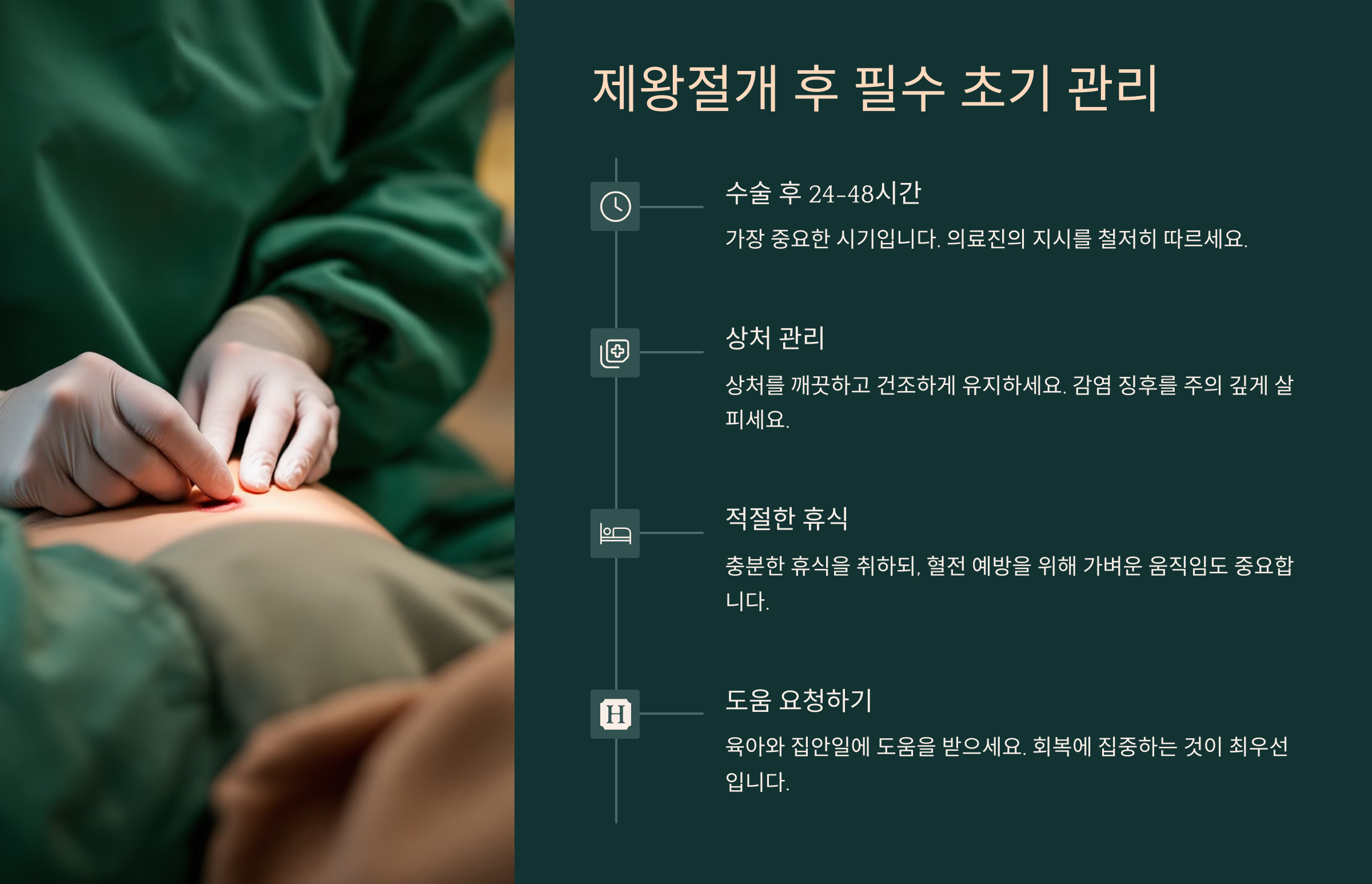초기 관리만 잘해도 회복 속도가 훨씬 빨라질 수 있어요. 특히 수술 후 첫 일주일은 무리하지 말고 최대한 몸을 돌보는 것이 중요해요.