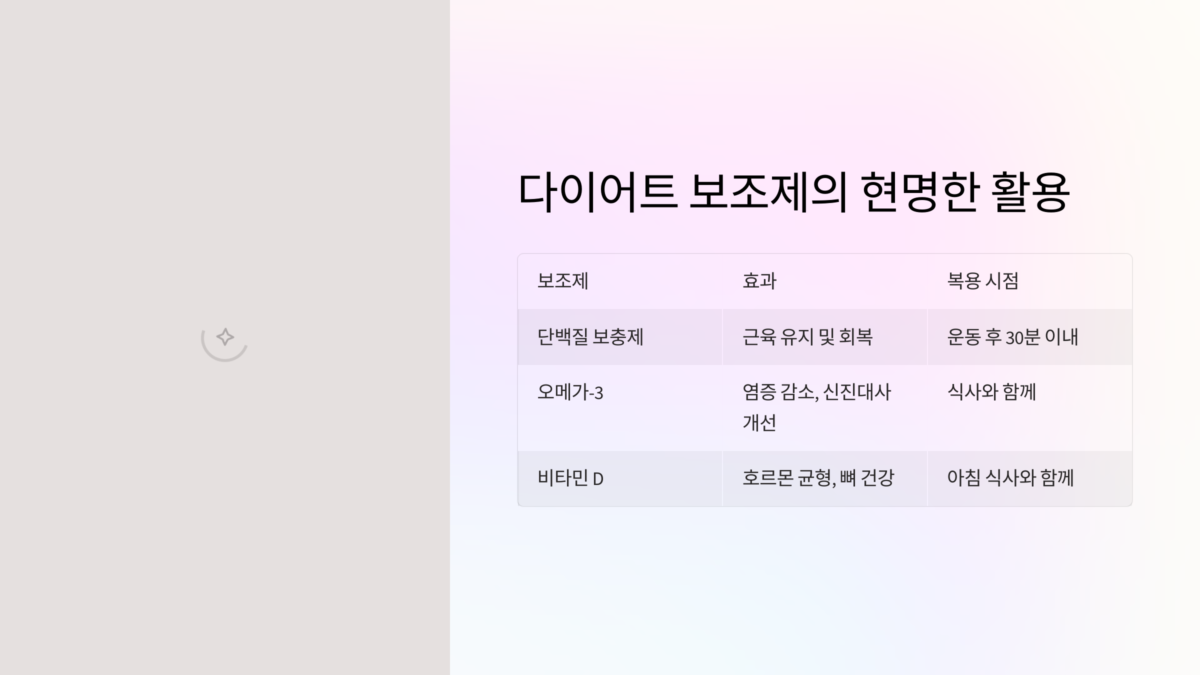 보조제는 식단과 운동을 보완해주는 역할로 활용해야 해요. '이걸 먹으면 살이 빠지겠지!'보다는, '내 루틴을 도와줄까?'라는 마음으로 접근하는 게 훨씬 건강하고 똑똑한 선택이에요!