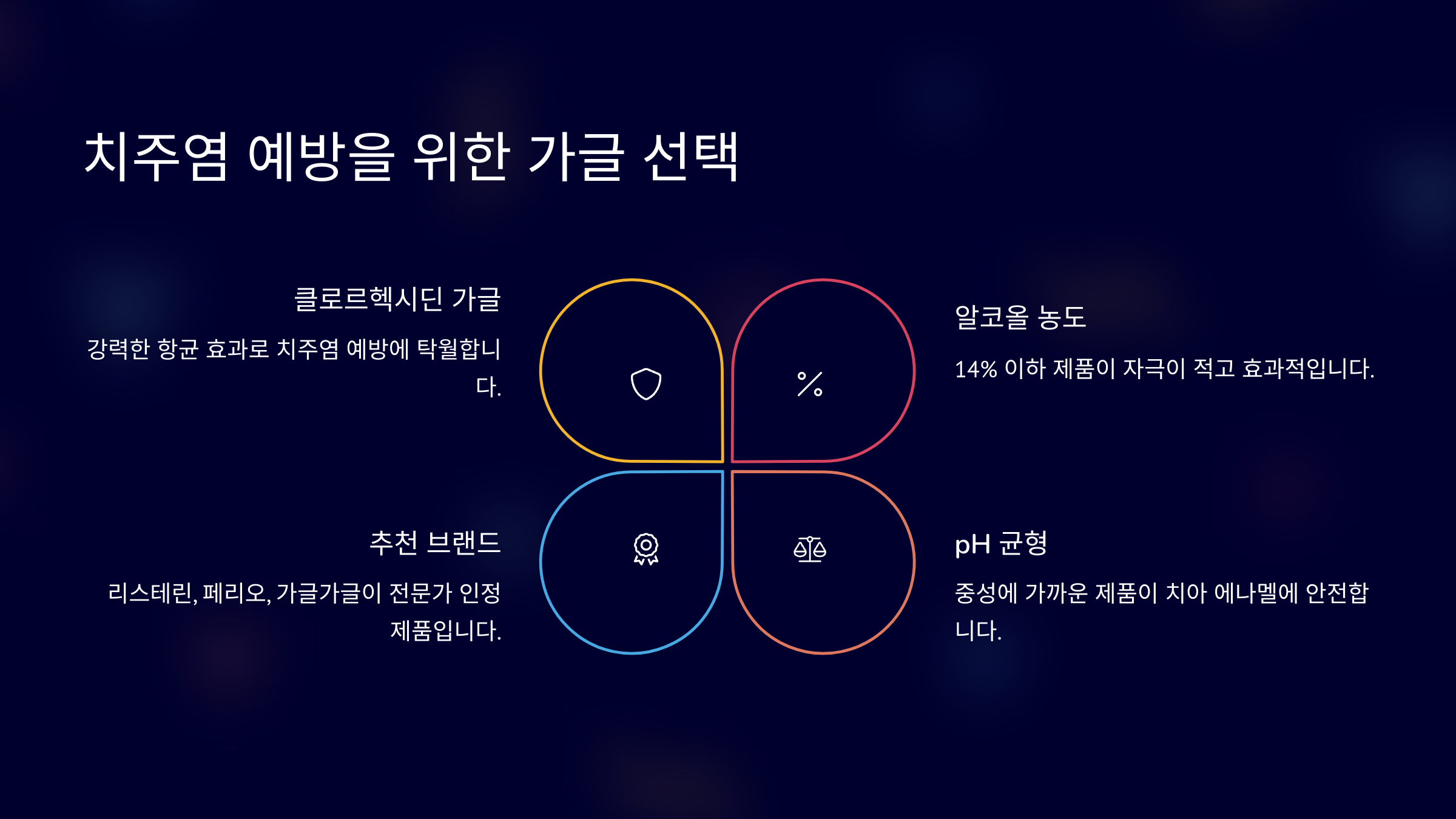 치주염은 단순한 잇몸 질환이 아니에요. 심한 경우 치아를 지지하는 뼈까지 파괴할 수 있는 무서운 질병이죠. 그래서 가글 선택도 신중해야 해요. 단순한 구취 제거 가글보다는 염증을 줄여주는 성분이 들어간 제품을 사용하는 게 좋아요.