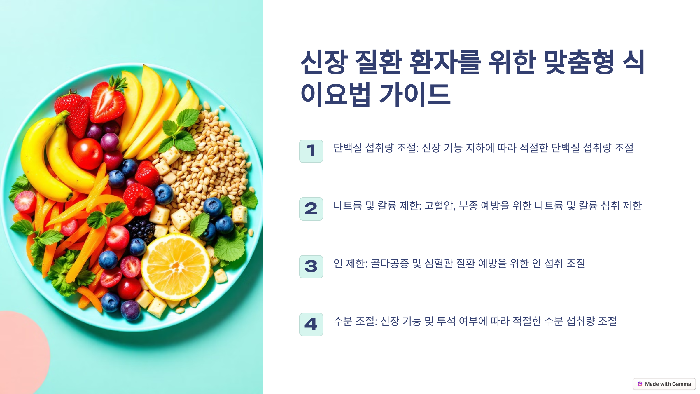 이런 식단을 유지하면 신장에 부담을 줄이고 건강을 지킬 수 있어요! 😊