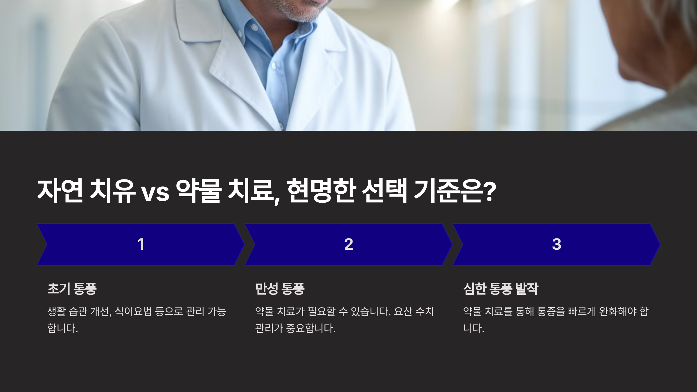 많은 사람들이 약물 없이 자연 치유를 선호하지만, 실제로 통풍을 완전히 자연적으로 치료하는 것은 어렵다는 것이 전문가들의 공통된 의견이에요. 자연적인 방법으로 어느 정도 증상을 완화할 수 있지만, **요산 수치가 높거나 통풍 발작이 반복되는 경우에는 약물 치료가 필수적**이에요.
