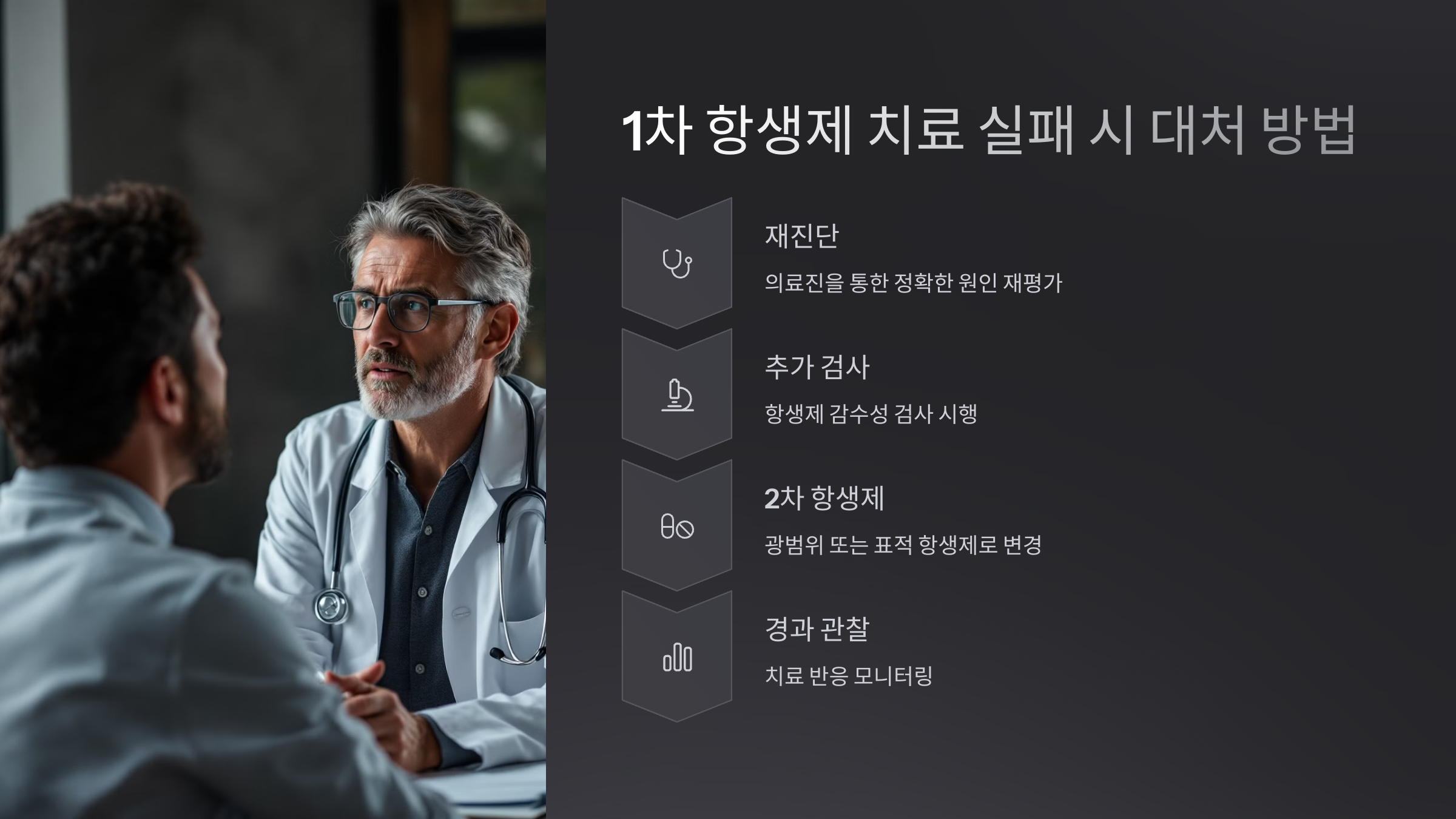 1차 항생제를 복용했는데 효과가 없었다면, 무작정 다른 항생제를 먹는 건 위험해요. 반드시 검사 결과를 토대로 가장 적절한 약제를 선택해야 해요. 2차 항생제는 더 강력하거나, 다른 작용기전을 가진 약으로 바뀌는 경우가 많아요.