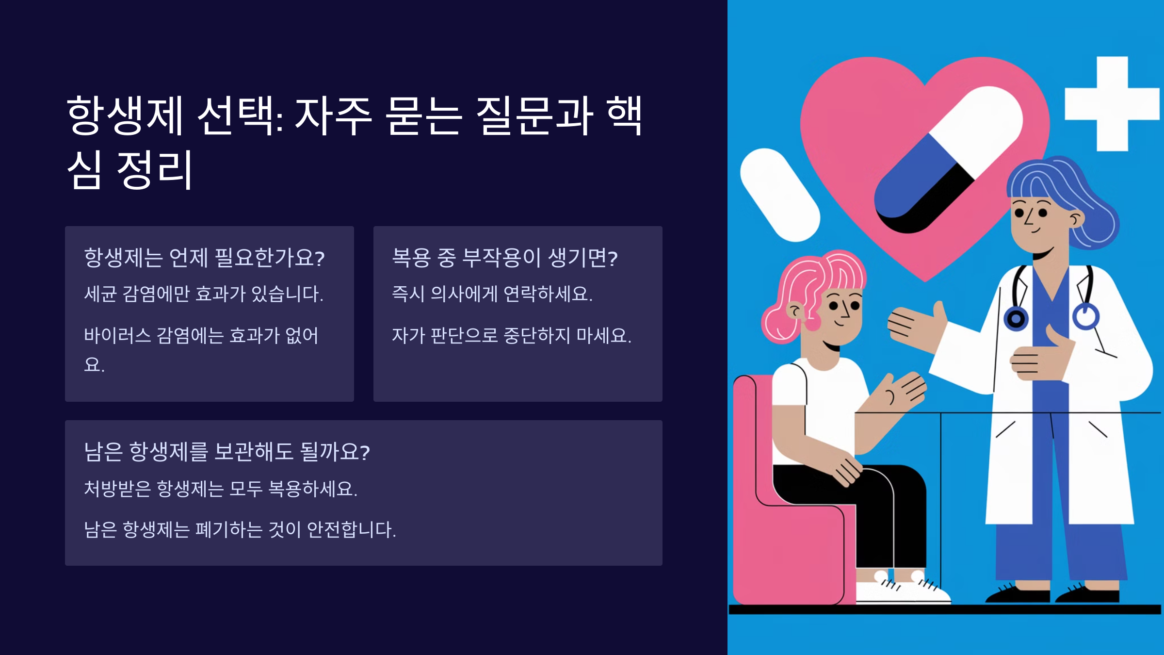 항생제는 약이지만, 마치 칼날처럼 양날의 검이 될 수 있어요. 아무리 좋은 약도 잘못 쓰면 독이 될 수 있다는 점 꼭 기억해요! 💊
