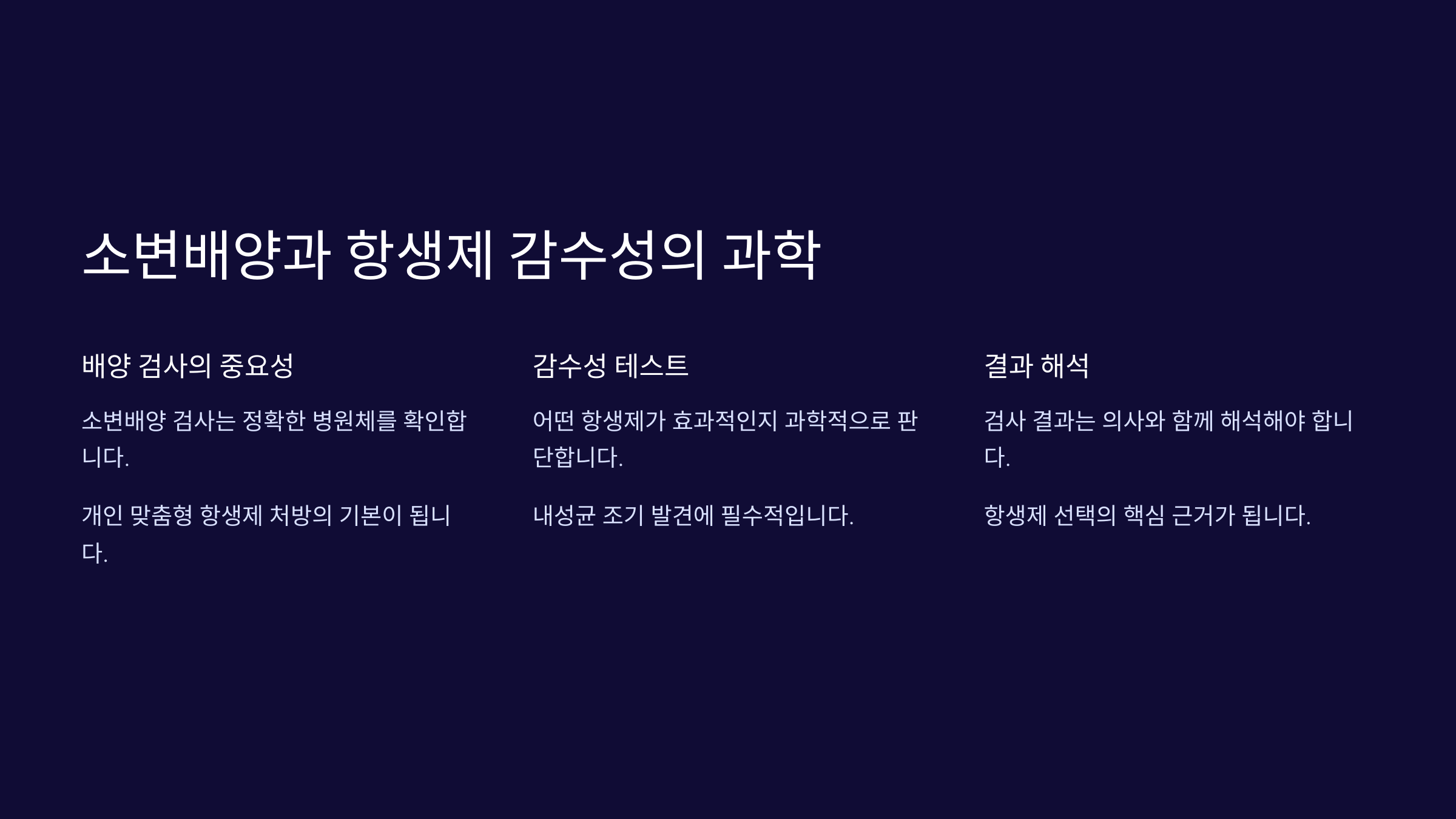 소변배양 검사가 중요한 이유는 바로 항생제 감수성 검사와 연결되기 때문이에요. 이 검사를 통해 어떤 항생제가 해당 세균에 효과가 있는지, 혹은 내성이 있는지를 확인할 수 있어요. 이 결과를 기반으로 의사는 가장 적절한 항생제를 선택하게 되죠.