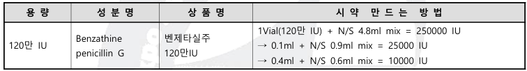 ※ 천연 페니실린 계열 (기준 10000 IU/ml)