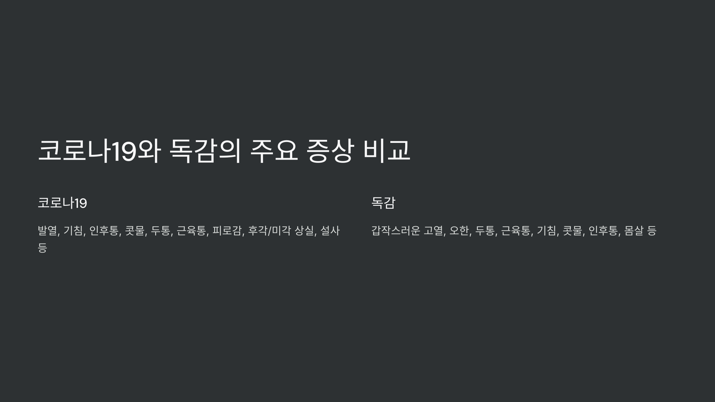 🤧 독감과 코로나 증상 비교