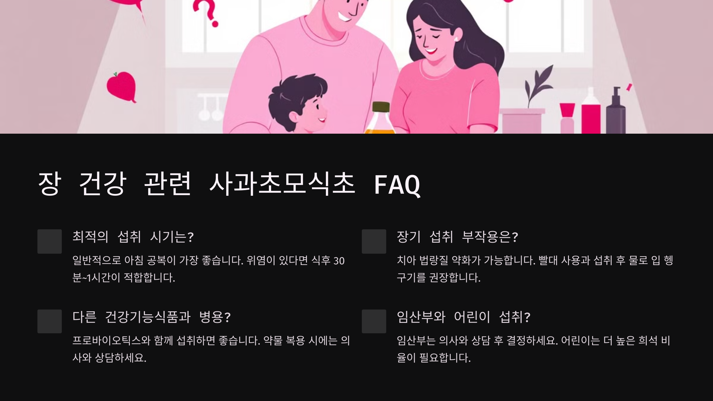 장 건강 관련 사과초모식초 자주 묻는 질문 (FAQ)